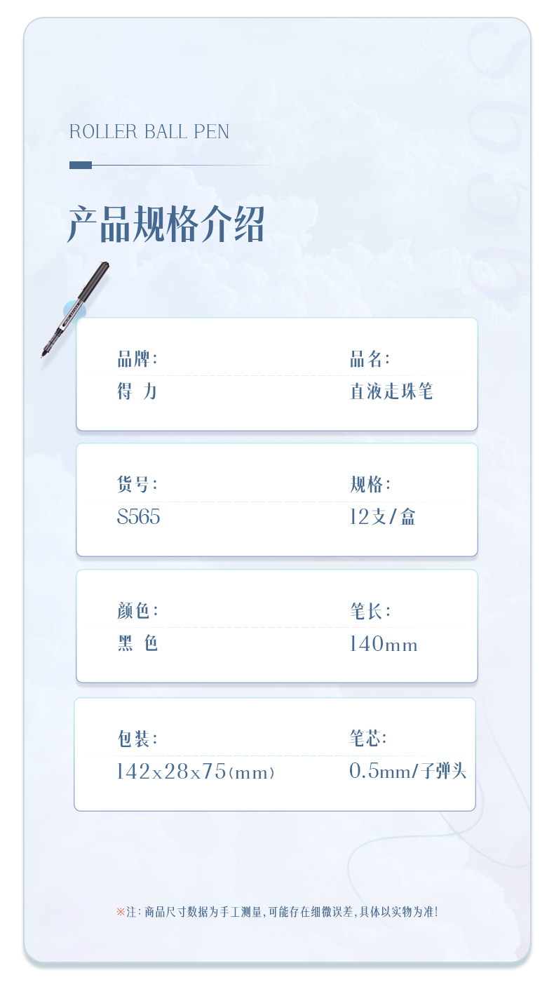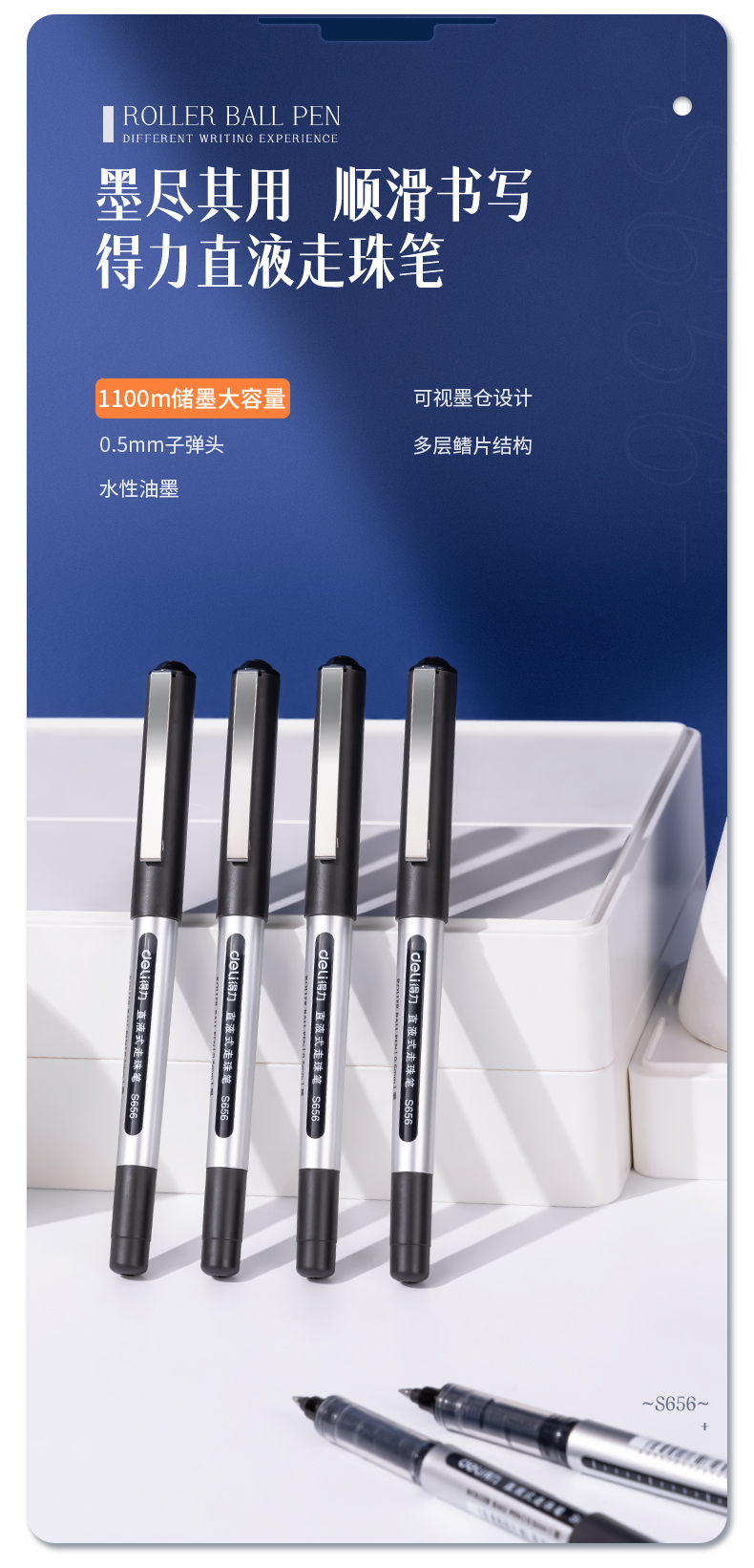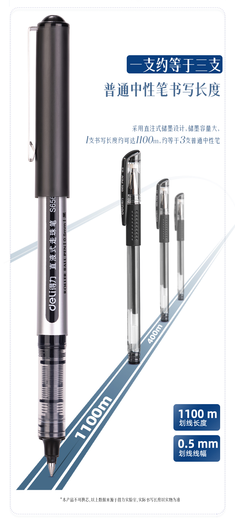 得力S656 書(shū)寫(xiě)用筆類用具 0.5mm子彈頭簽字筆學(xué)生考試筆走珠筆水筆 黑色 辦公用品12支/盒S656