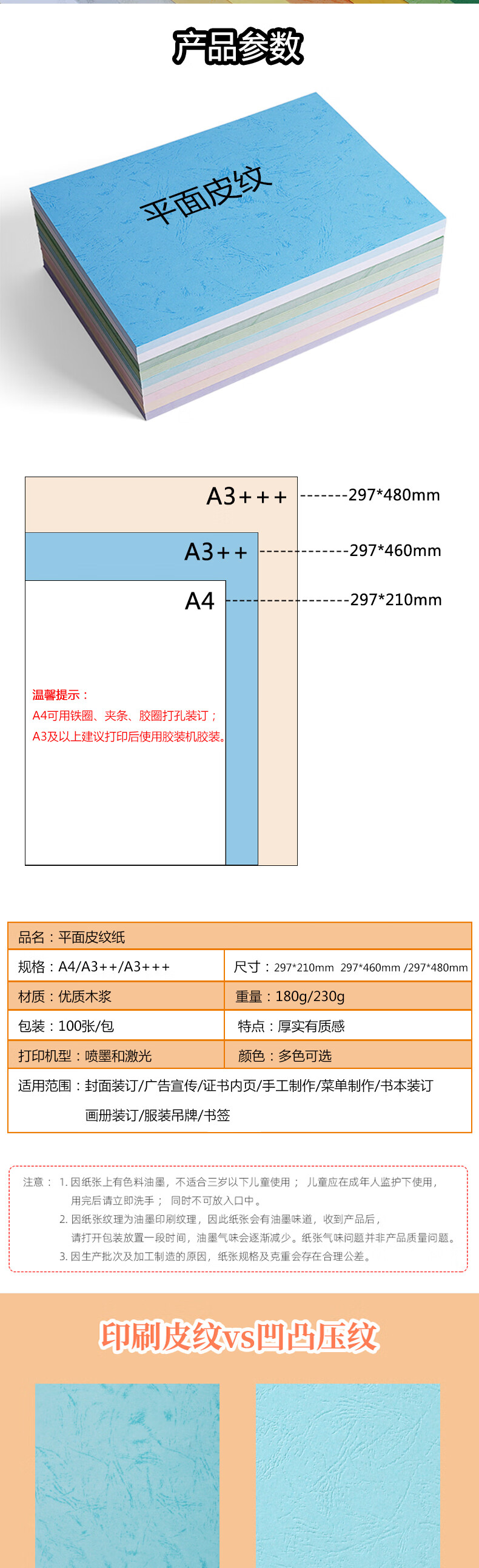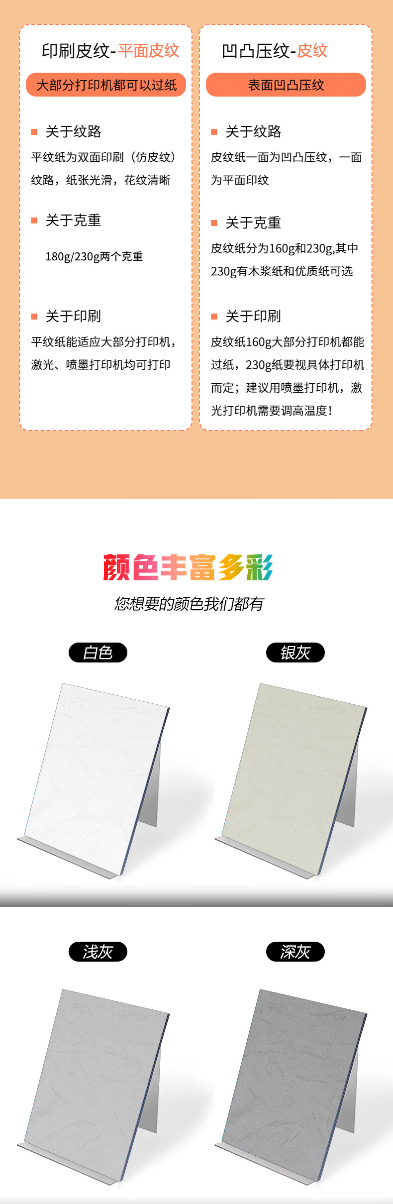 道頓 180g297*460mm A4噴墨/相片紙/卡紙 100張 平面皮紋紙封皮紙仿皮紋標書文件合同混色封面紙云彩紙 297*460mm100張