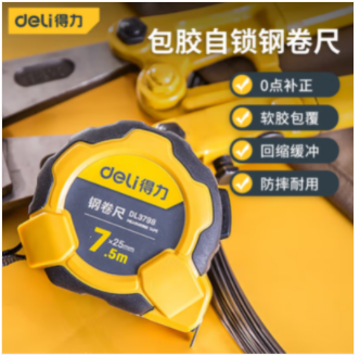 得力/deli DL3797 卷尺5米包膠自鎖鋼卷尺盒尺伸縮尺米尺公制