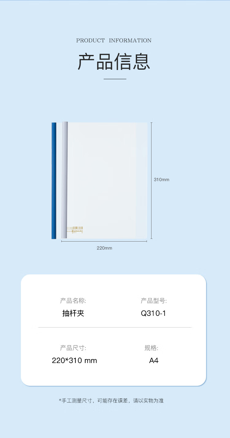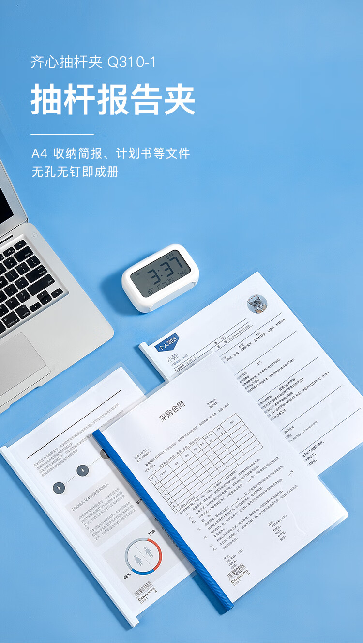 齊心/COMIX Q310-1 文件夾 10個(gè)裝A4抽桿夾/文件夾/報(bào)告夾/拉桿夾白色 辦公文具
