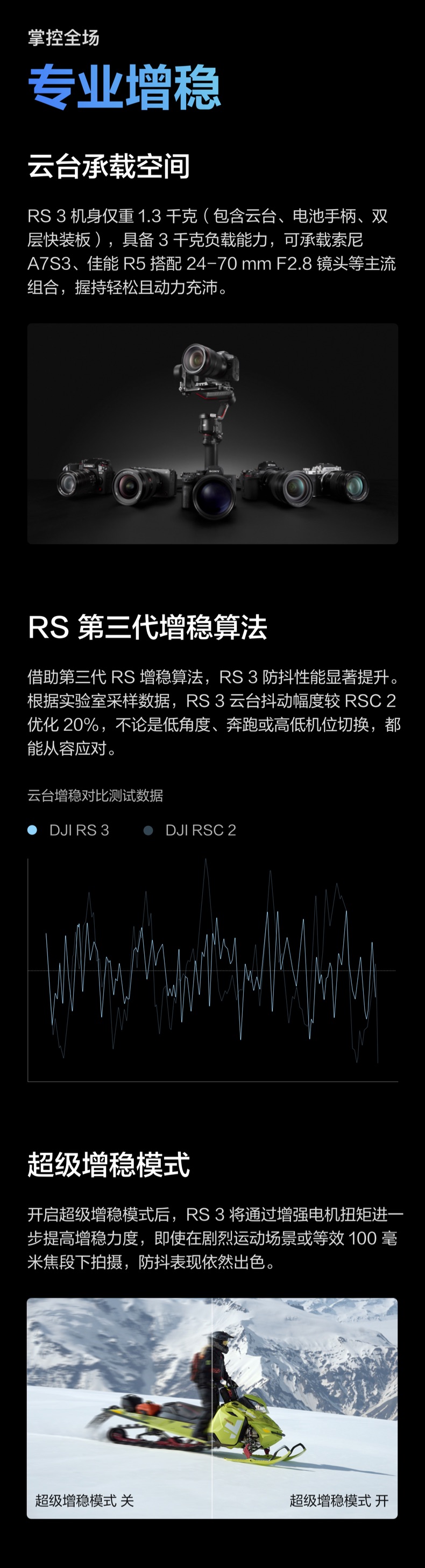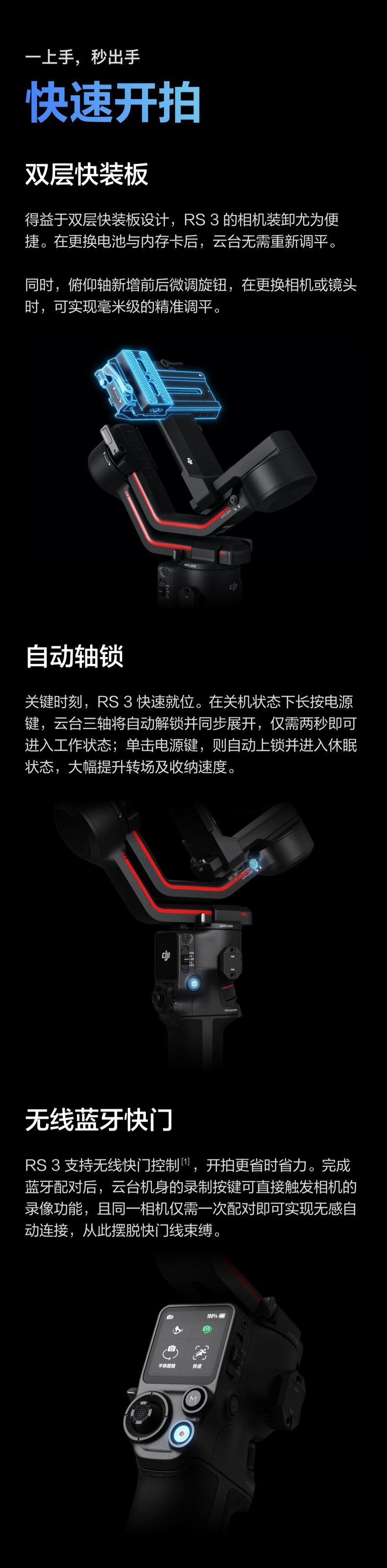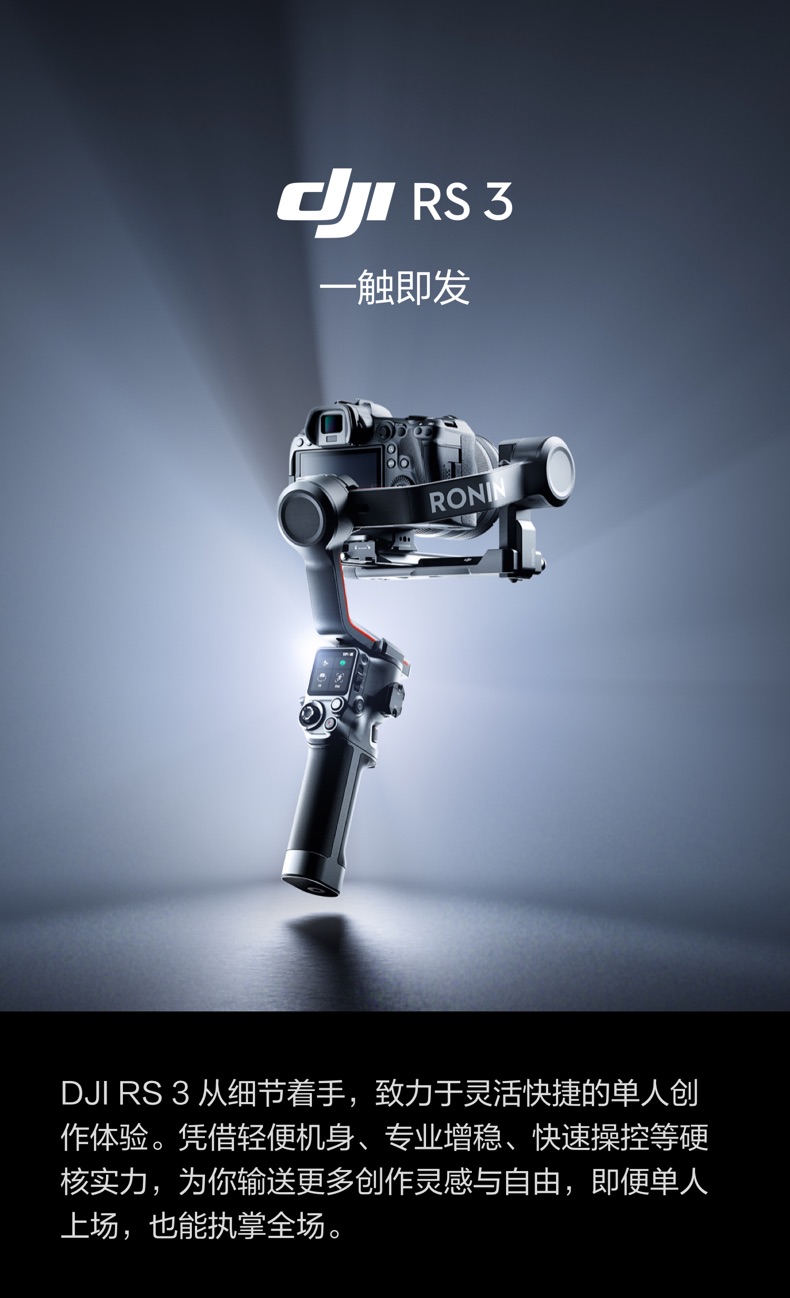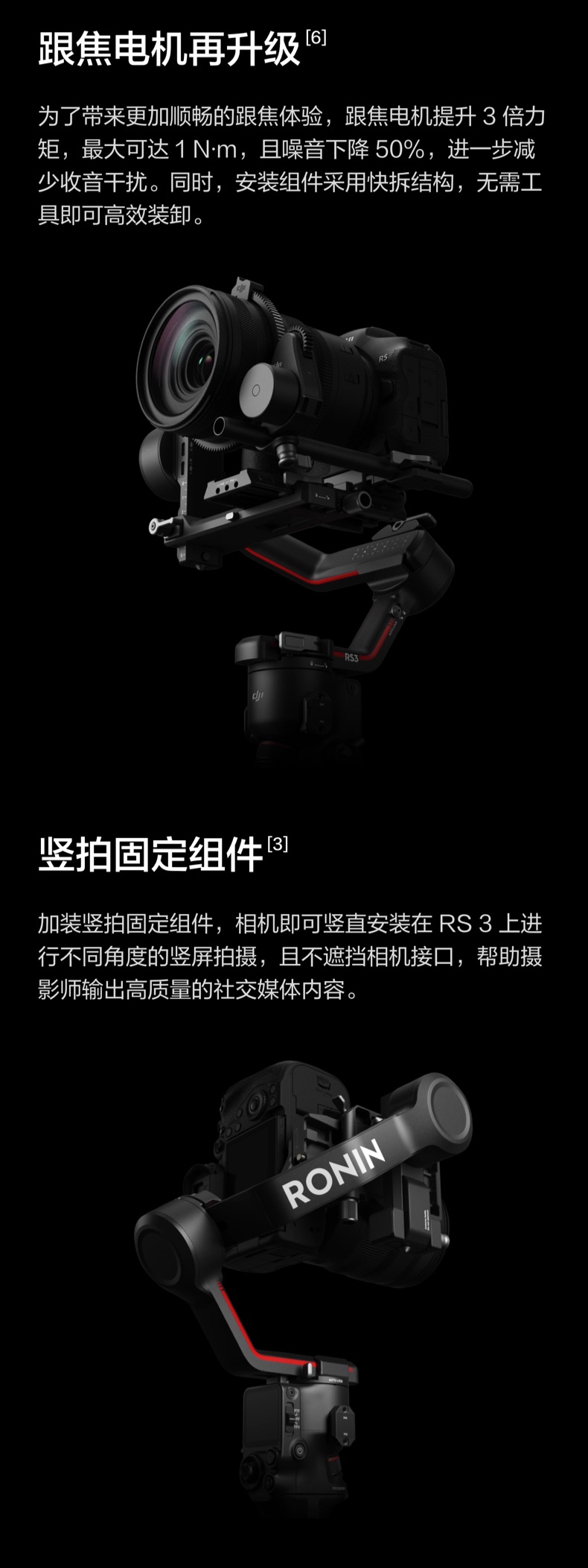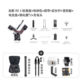 大疆(DJI) 如影RS3 RS3 PRO手持云臺穩(wěn)定器 單反穩(wěn)定器 專業(yè)防抖拍攝手持云臺 RS3標準版【贈收納包+豎拍板+延長桿+配件禮包 不含隨心換