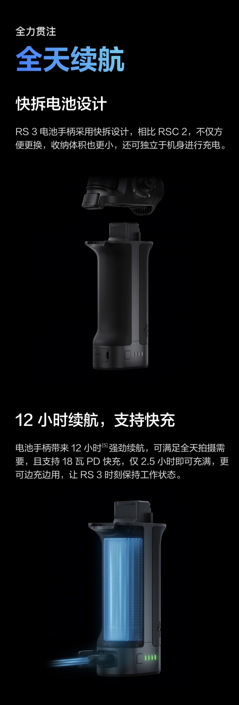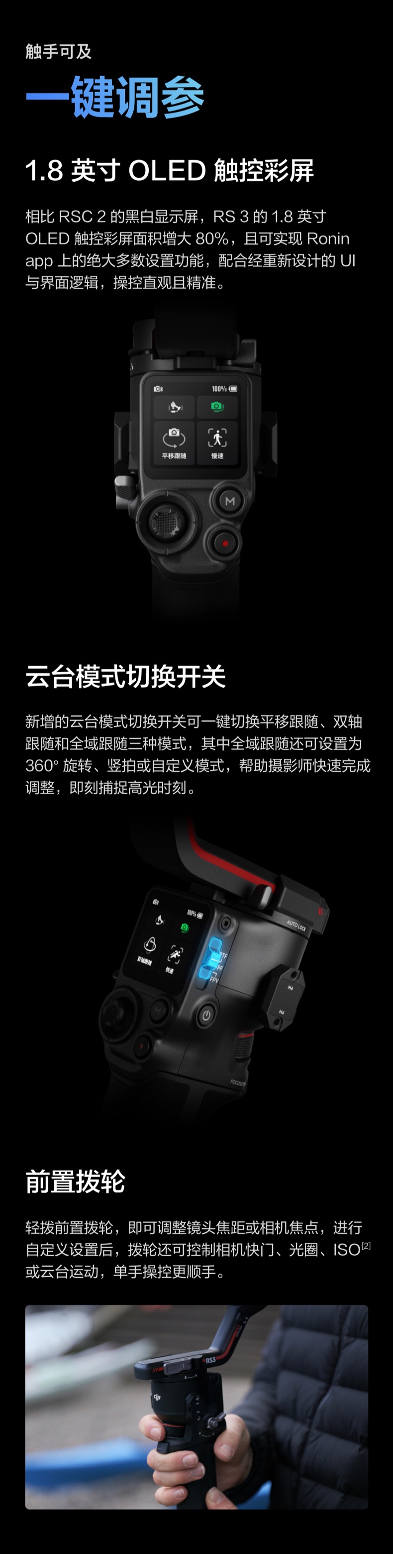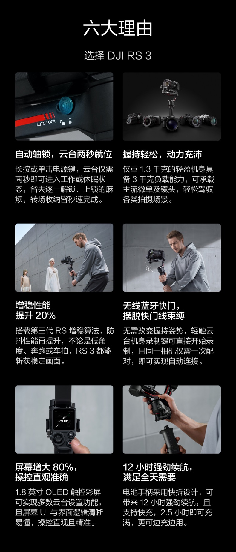 大疆(DJI) 如影RS3 RS3 PRO手持云臺穩(wěn)定器 單反穩(wěn)定器 專業(yè)防抖拍攝手持云臺 RS3標準版【贈收納包+豎拍板+延長桿+配件禮包 不含隨心換