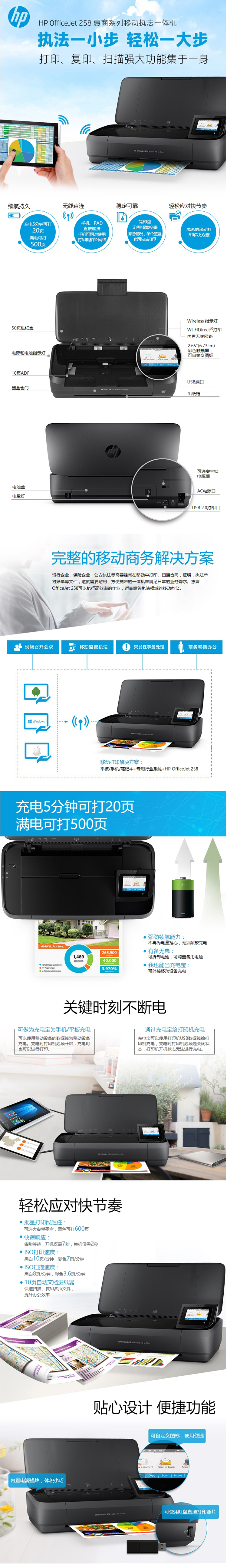 惠普(HP)OfficeJet 258 OJ258 Mobile All-in-One 一年保修 便攜式噴墨一體機 全國免費上門安裝