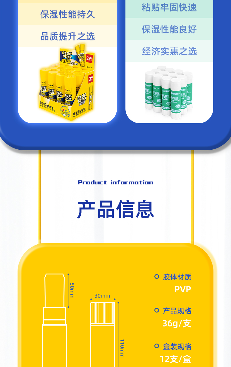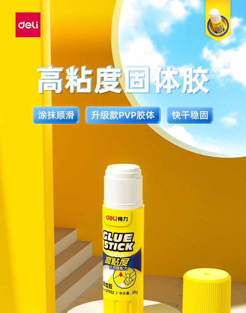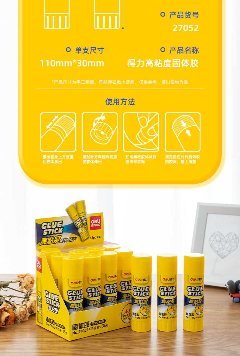 得力/deli 36g 膠棒/固體膠/膠水 高粘度PVP固體膠水 無甲醛快干耐用膠棒 12支裝 辦公用品 27052