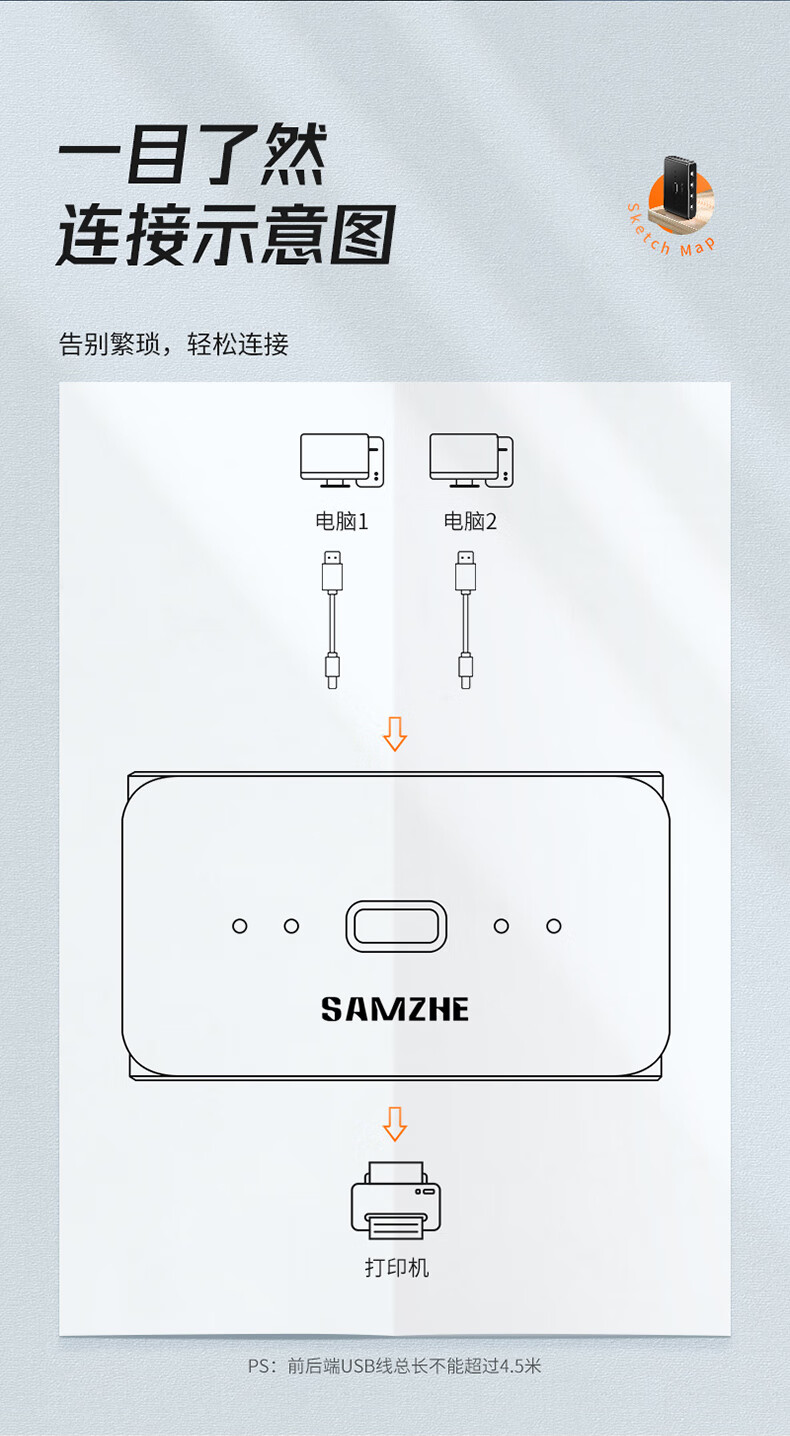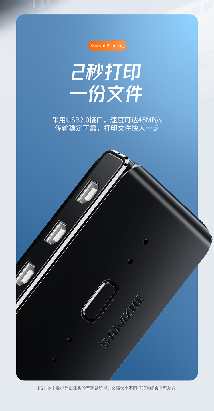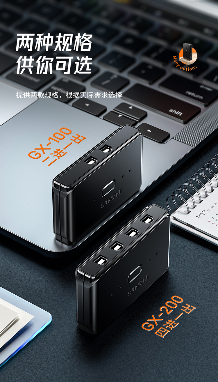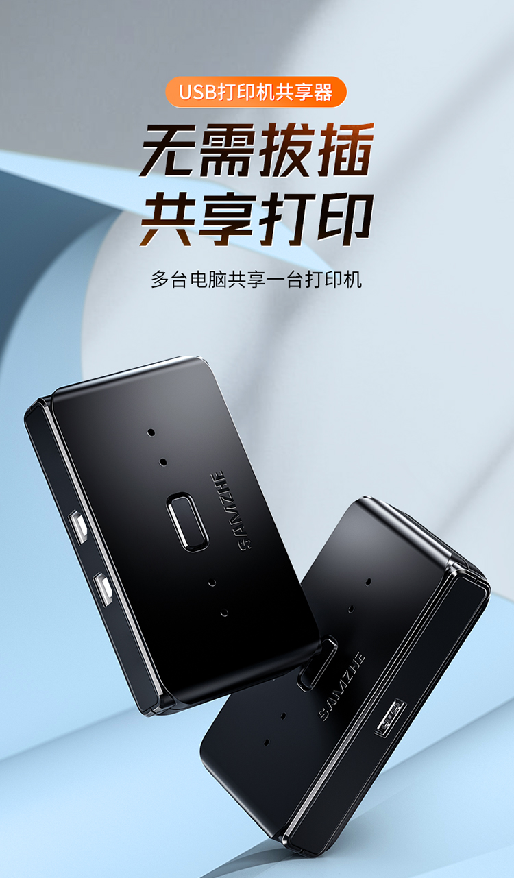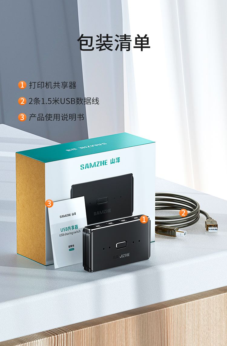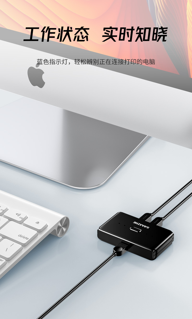 山澤(SAMZHE) GX-100 網(wǎng)絡(luò)連接設(shè)備 USB打印機(jī)共享器一分二 二進(jìn)一出分線切換器 臺(tái)式機(jī)電腦共享一拖二