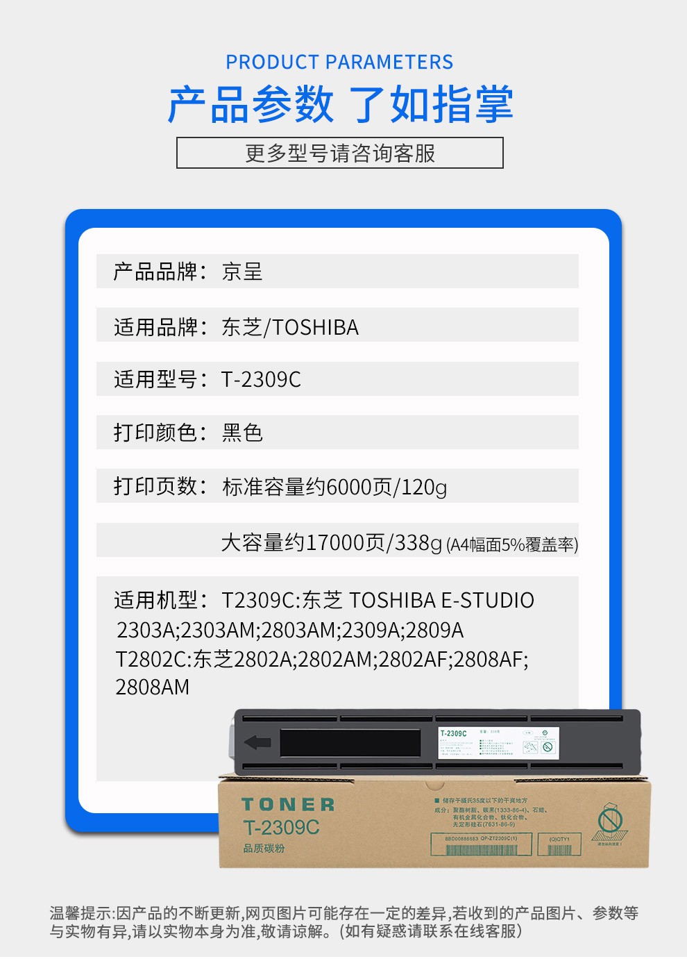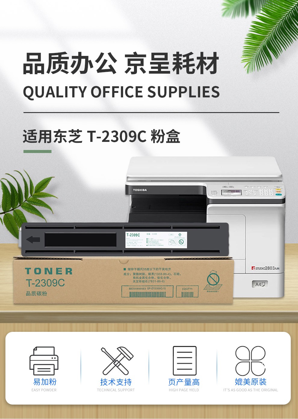 京呈 T-2309C 碳粉 300g 適用東芝2303A粉盒T-2309C墨盒2303AM硒鼓2803A打印機(jī)2309A墨粉2809A 高清碳粉含芯片 300g/瓶 升級(jí)版芯片 新老機(jī)器適用