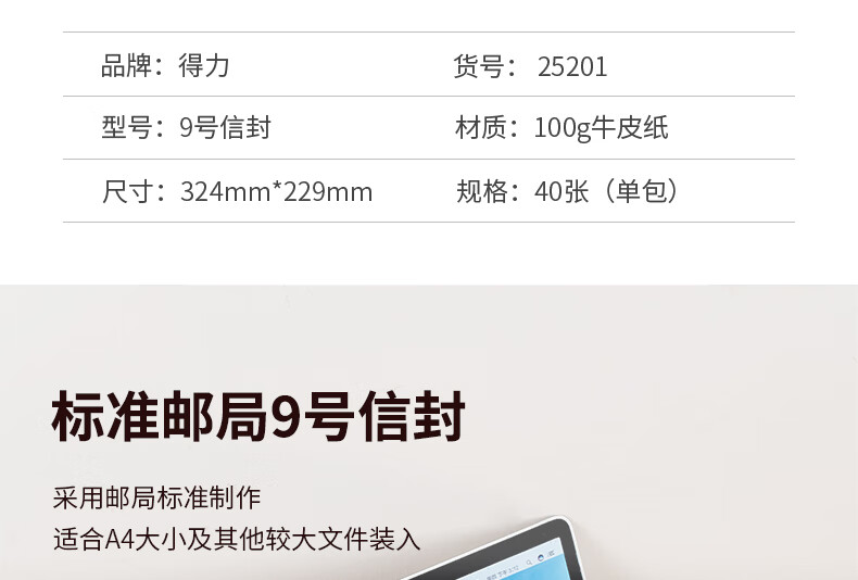 得力 deli 25201 1支裝 A4牛皮紙大信封