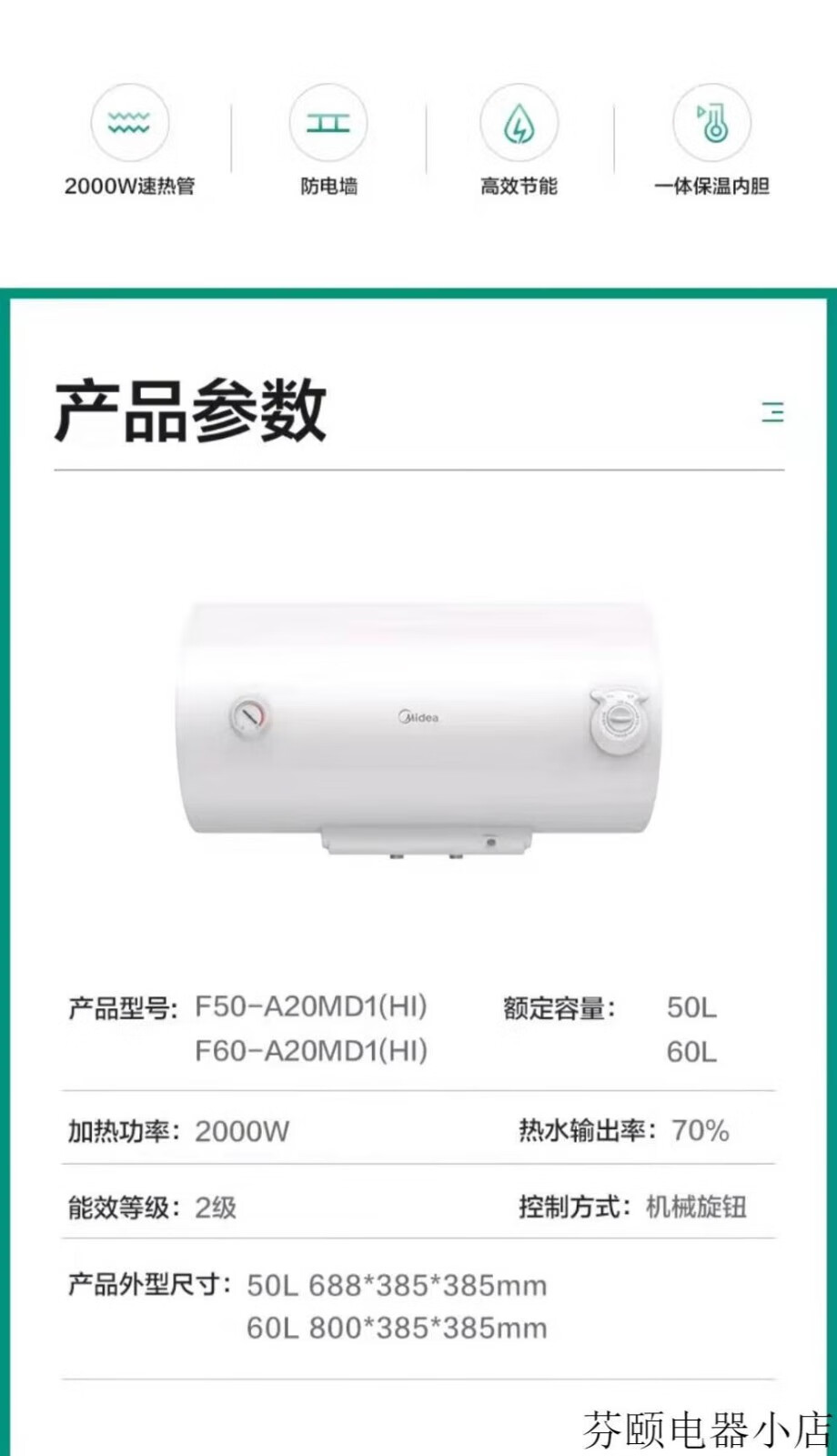 美的 F60-A20MD1熱水器(HI)電熱水器50升60家用出租房儲水速熱 60升