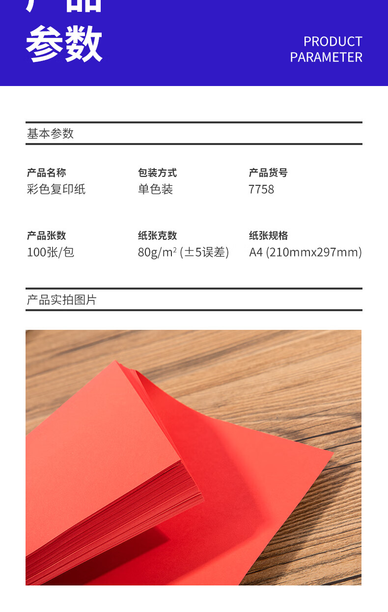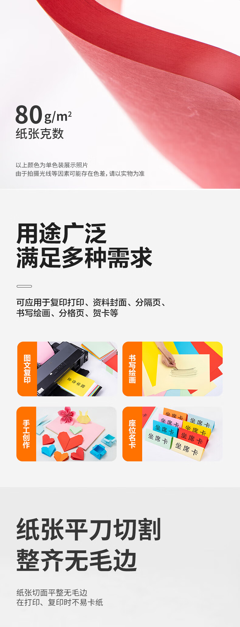 得力 A4 80g 噴墨/相片紙/卡紙 紅色彩紙