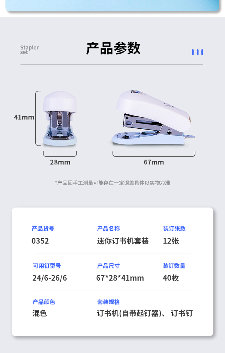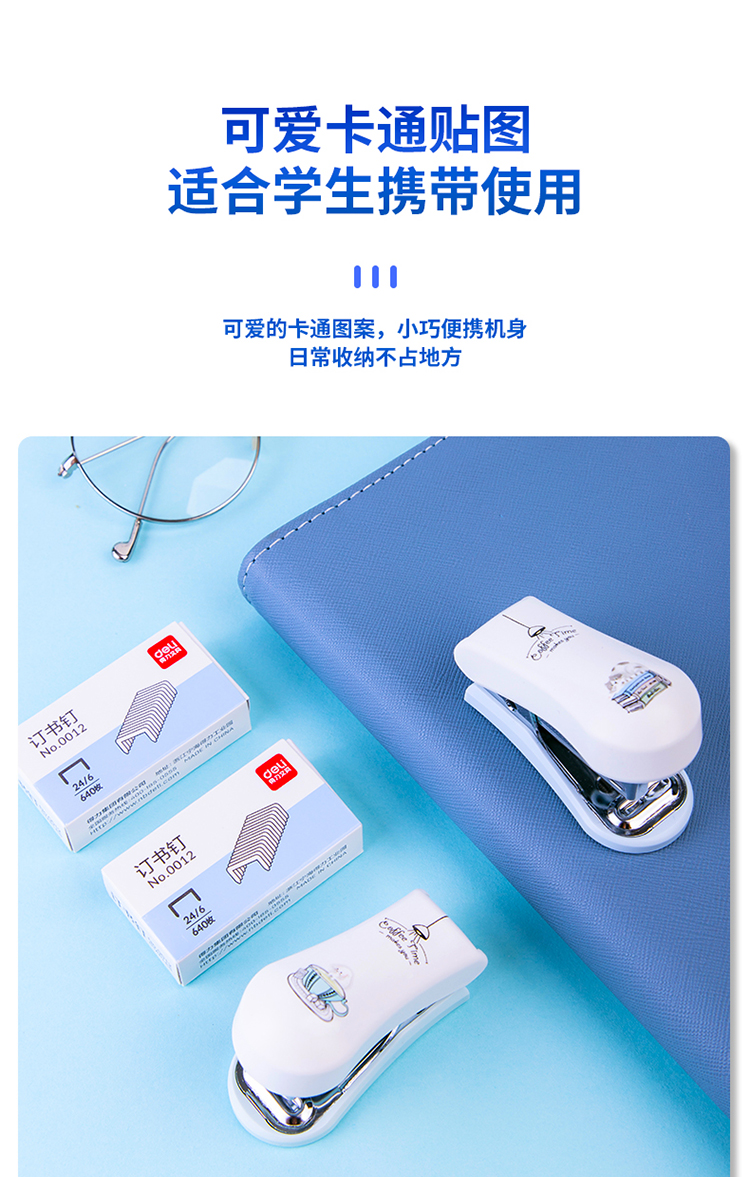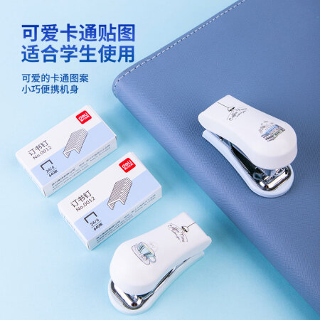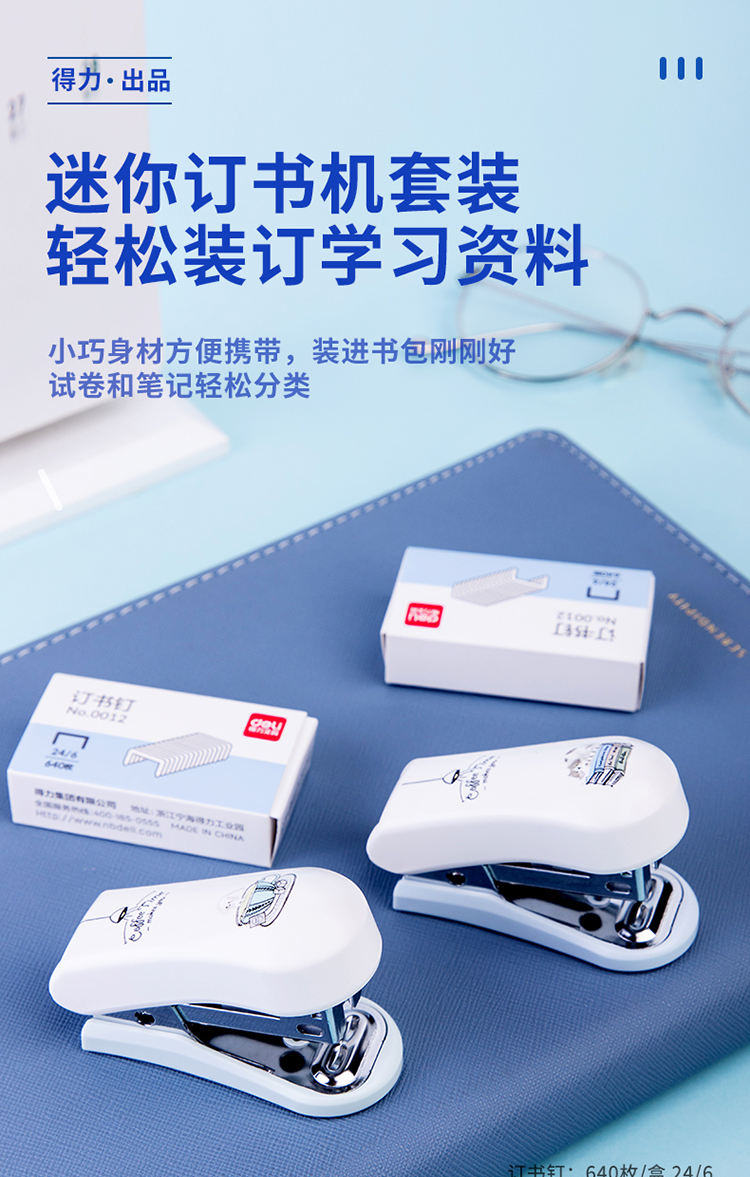 得力 deli 12#彩色實用迷你型訂書器訂書機套裝 訂書機+訂書針