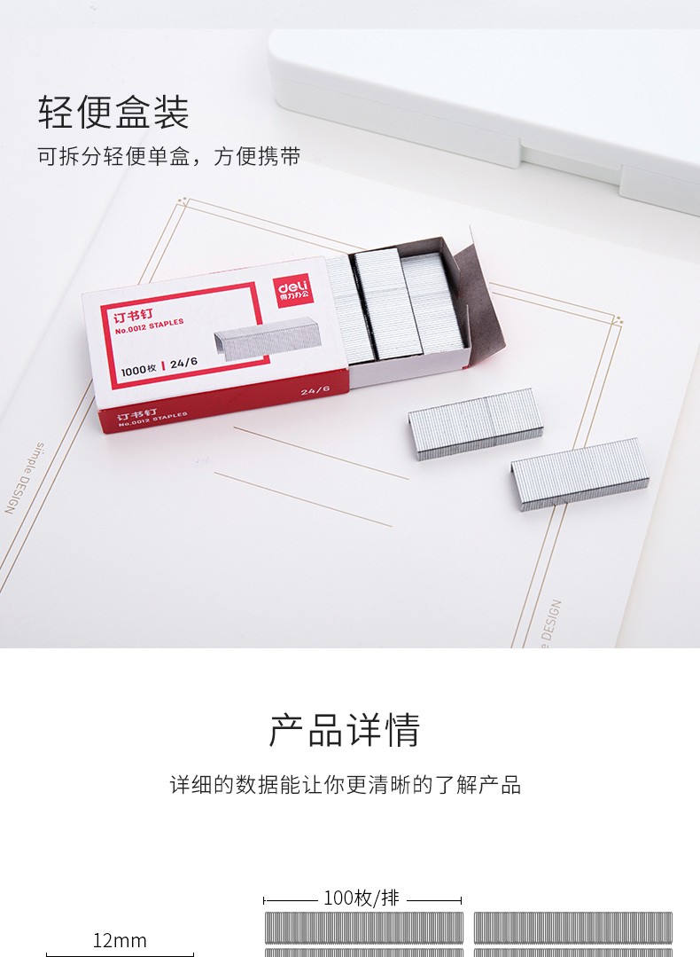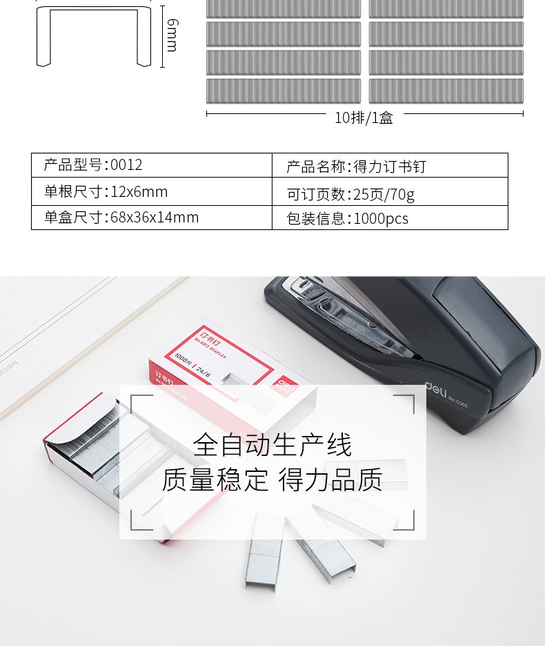 得力/deli 0012 裝訂及打孔類 訂書釘通用型12#訂書針辦公用品釘書訂