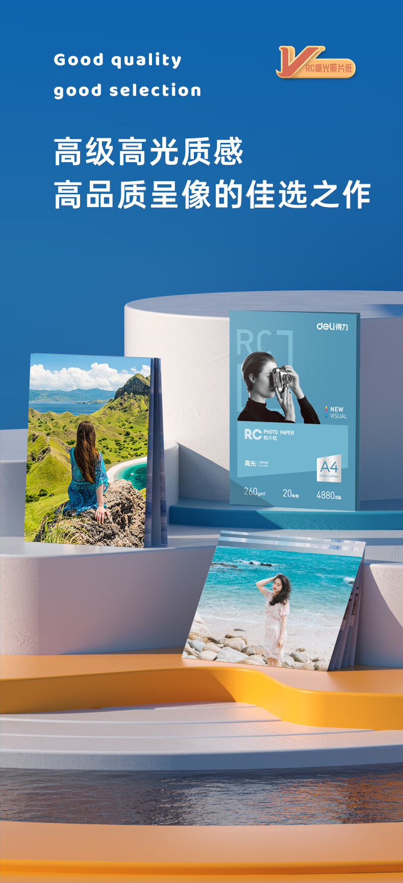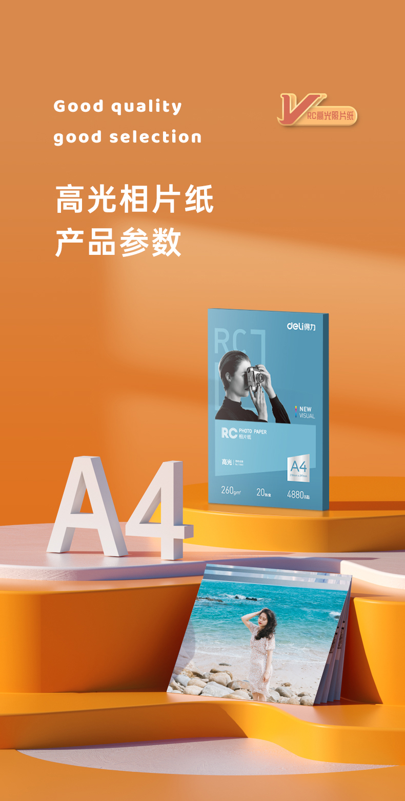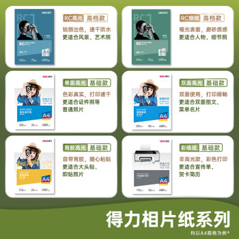 得力 11840 噴墨/相片紙/卡紙 A4 260g高光面RC專業(yè)相片紙 影樓專用照片打印紙 20張/盒