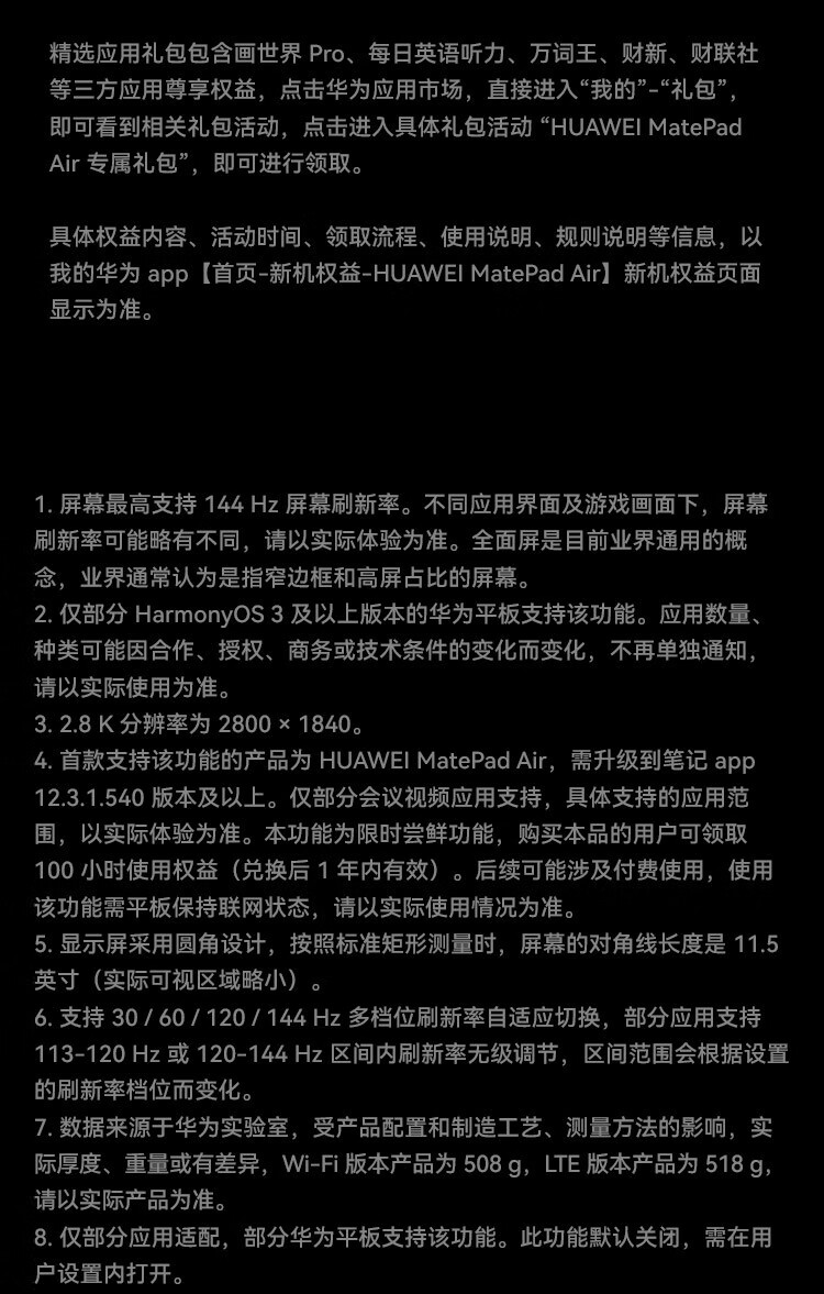 華為 MatePad Air 平板式微型計(jì)算機(jī)11.5寸 WIFI 12GB+256GB