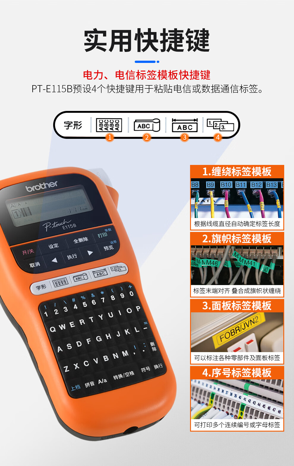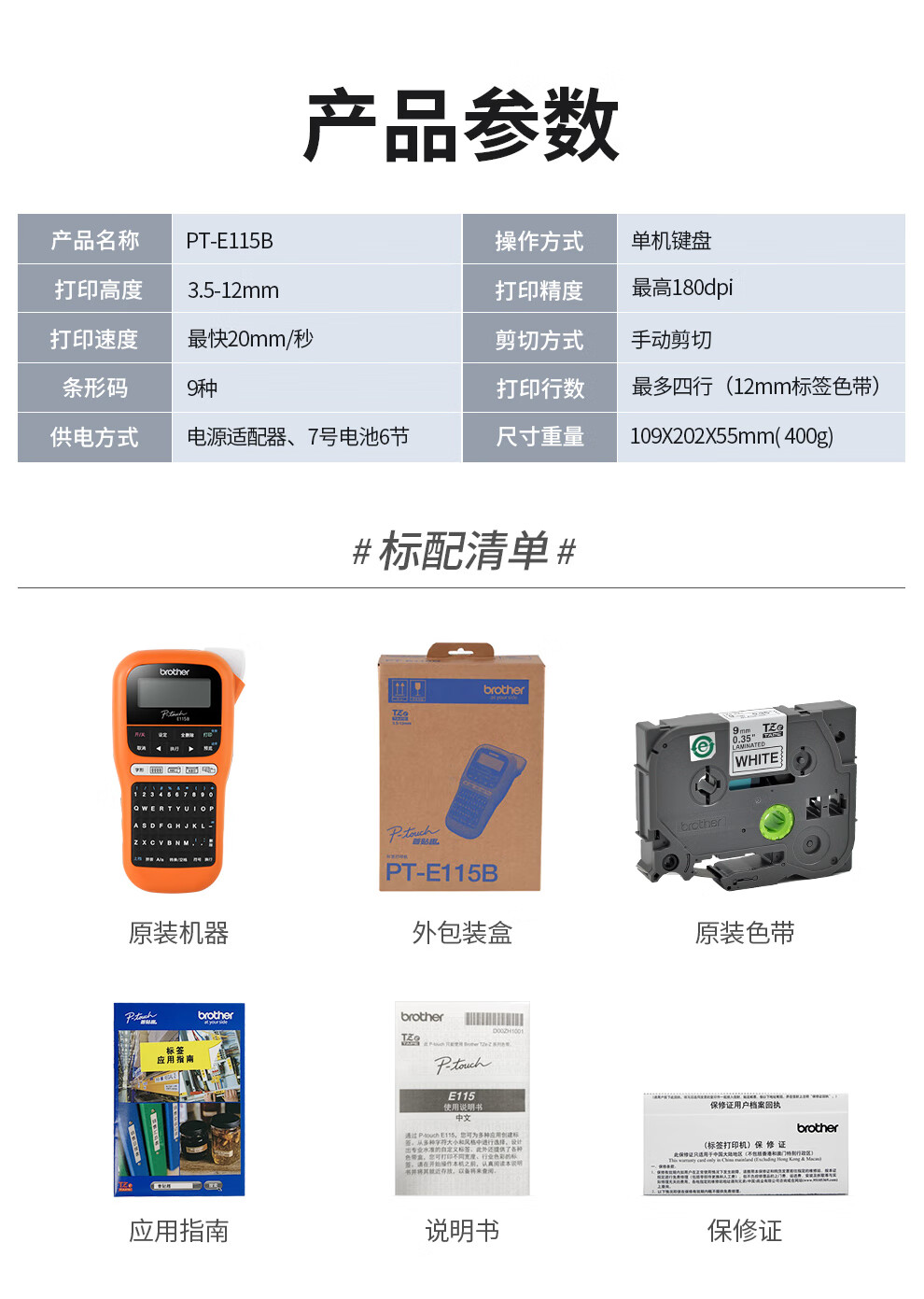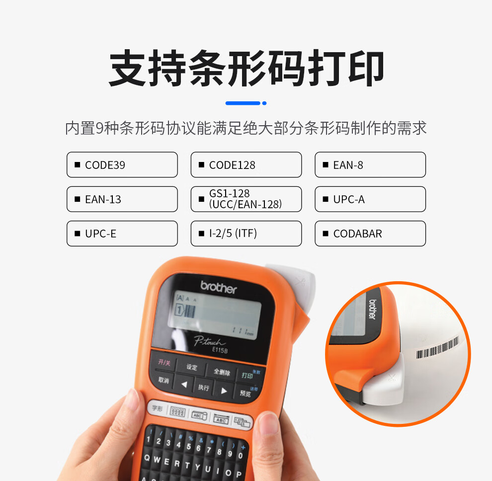 兄弟 PT-E115B條碼打印機 標簽機 貼紙打印手持便攜弱電工程線纜布線小型標簽打印機 PT-E115B官方標配