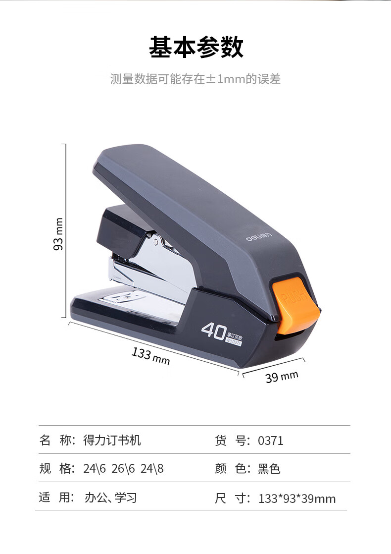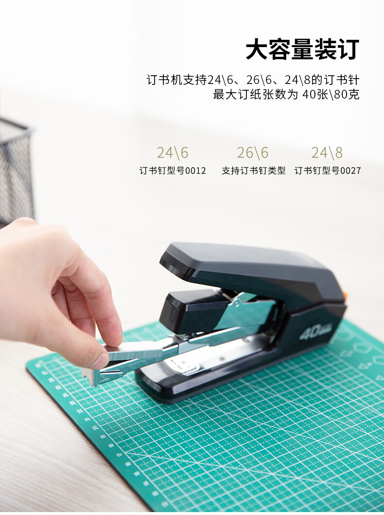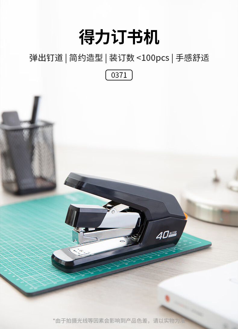 得力 0371 裝訂及打孔類 40頁省力型訂書機(jī)/訂書器 適配24/6,26/6及24/8訂書釘【0371訂書機(jī)/黑色】