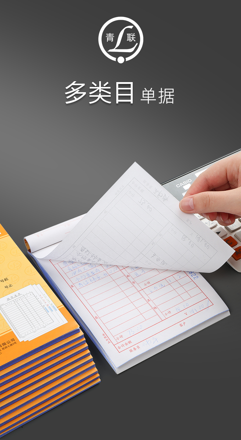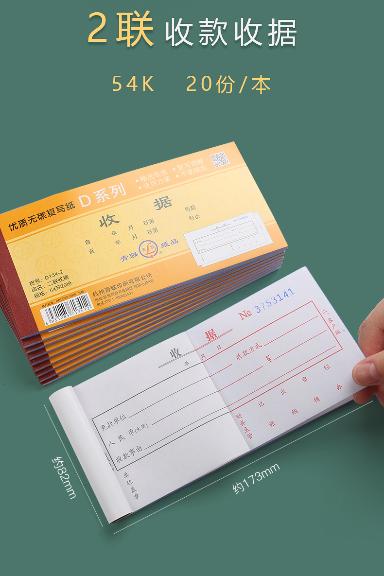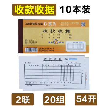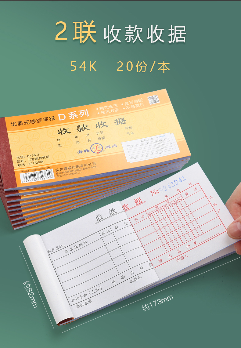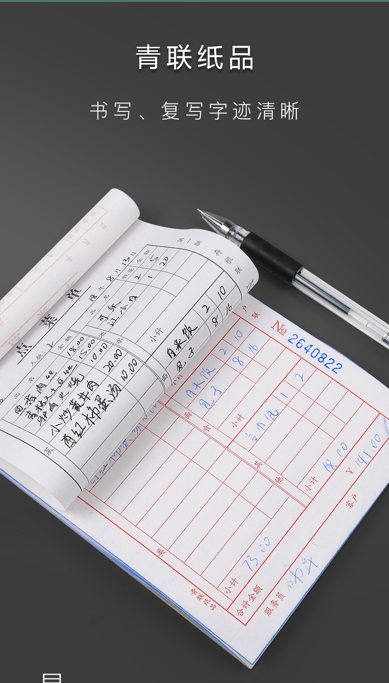 青聯(lián) qinglian 單據(jù)/憑證 優(yōu)質(zhì)無碳復(fù)寫紙單票據(jù)財(cái)務(wù)用品收據(jù)銷貨清單點(diǎn)菜單 1本裝 54開 二聯(lián)收款收據(jù)