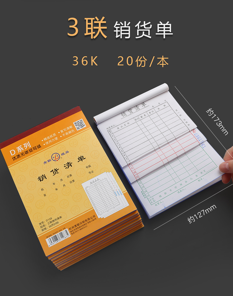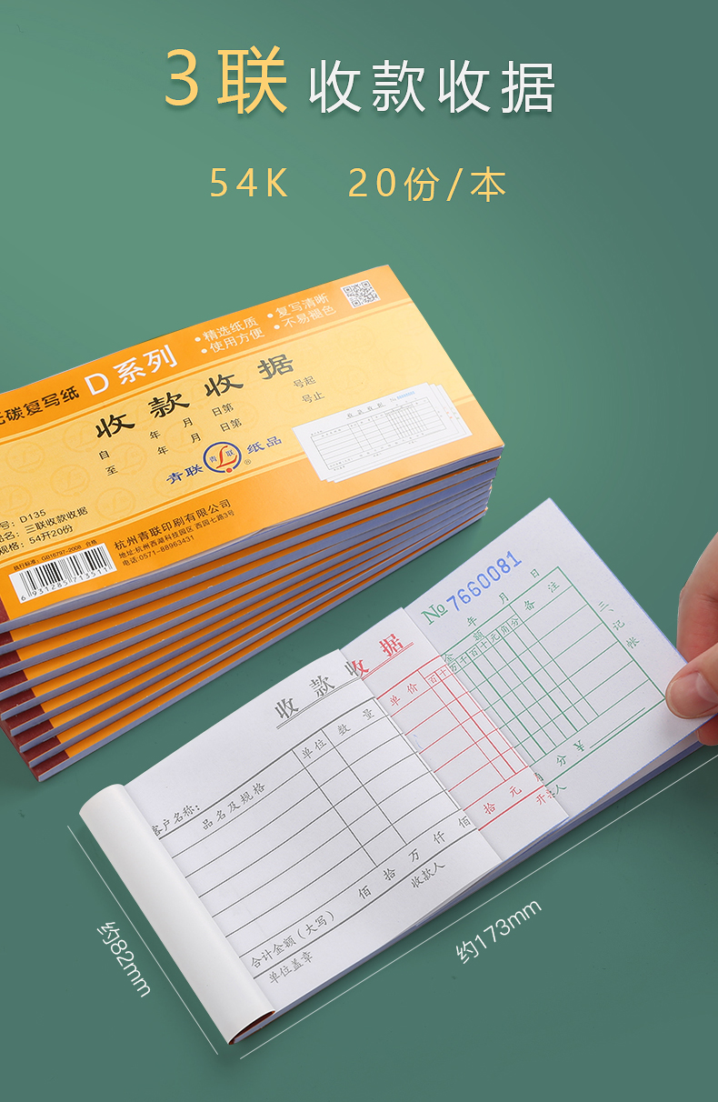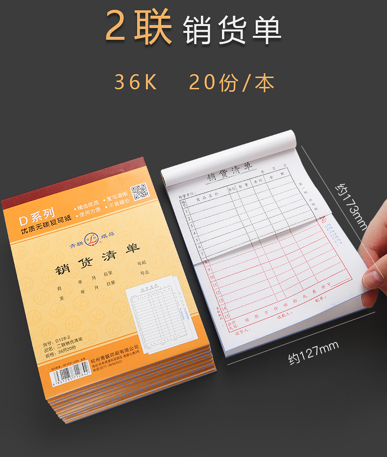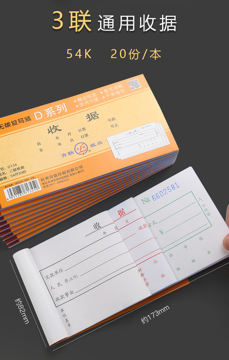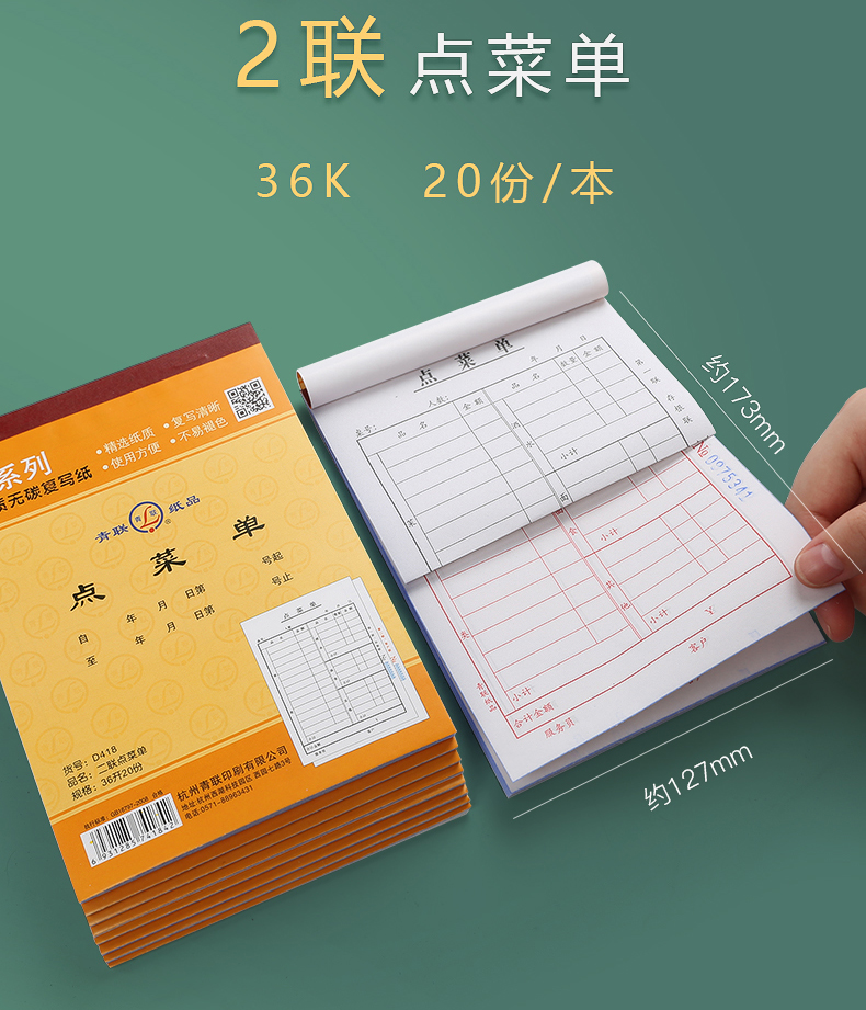 青聯(lián) qinglian 單據(jù)/憑證 優(yōu)質(zhì)無碳復(fù)寫紙單票據(jù)財(cái)務(wù)用品收據(jù)銷貨清單點(diǎn)菜單 1本裝 54開 二聯(lián)收款收據(jù)