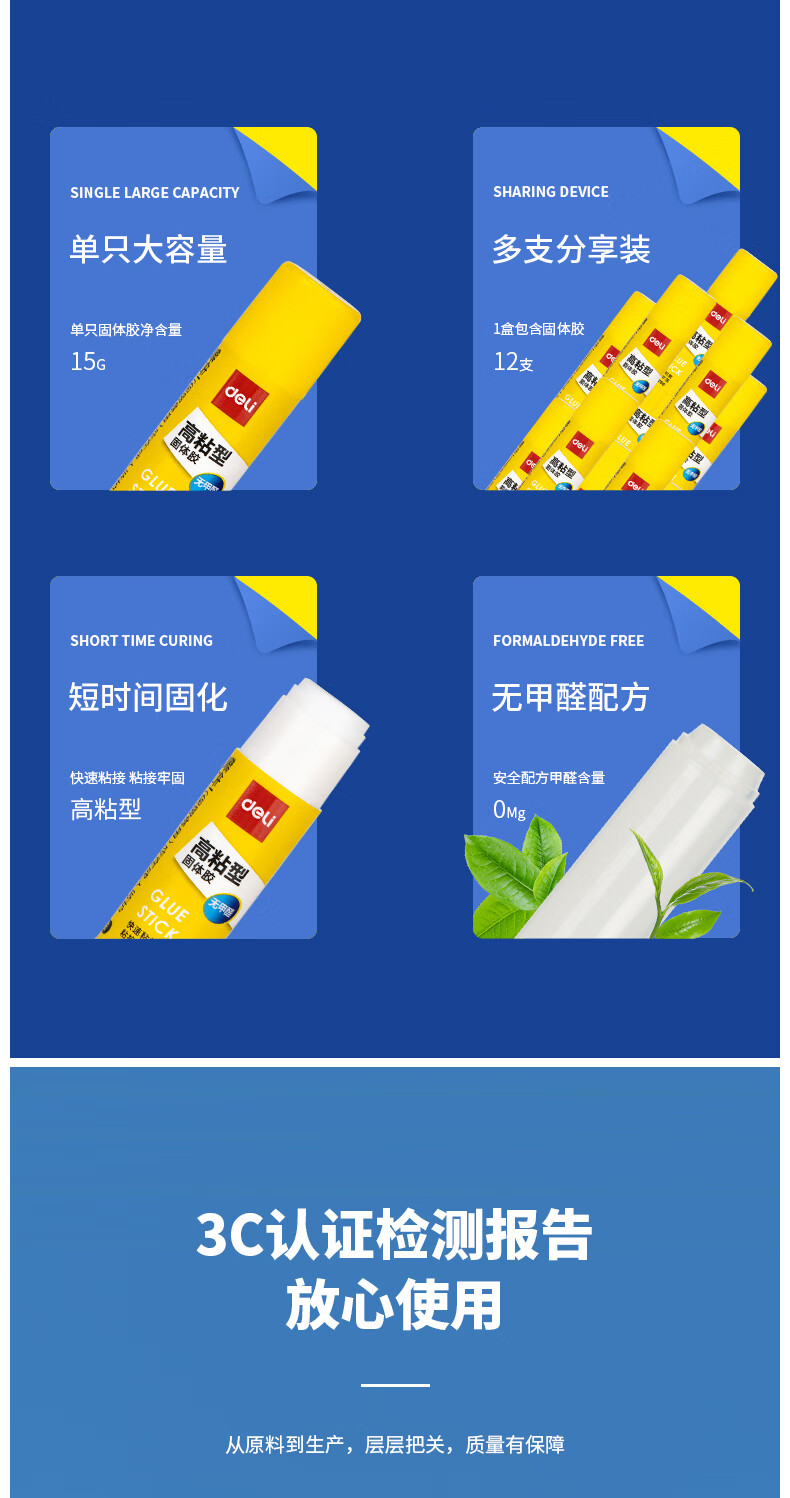 得力 36g 膠棒/固體膠/膠水 高粘度PVP強力固體膠棒膠水辦公文具無甲醛快干耐用膠棒便攜 學習生活手工辦公固體膠 【無甲醛升級款】2支裝-36g