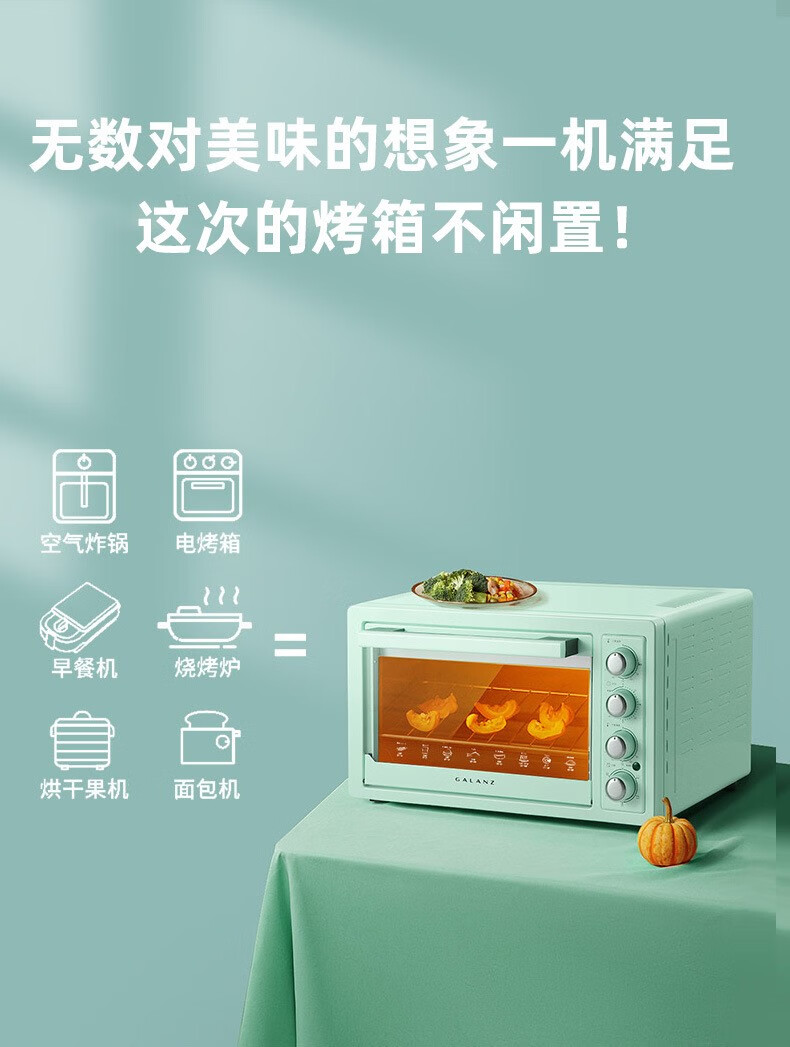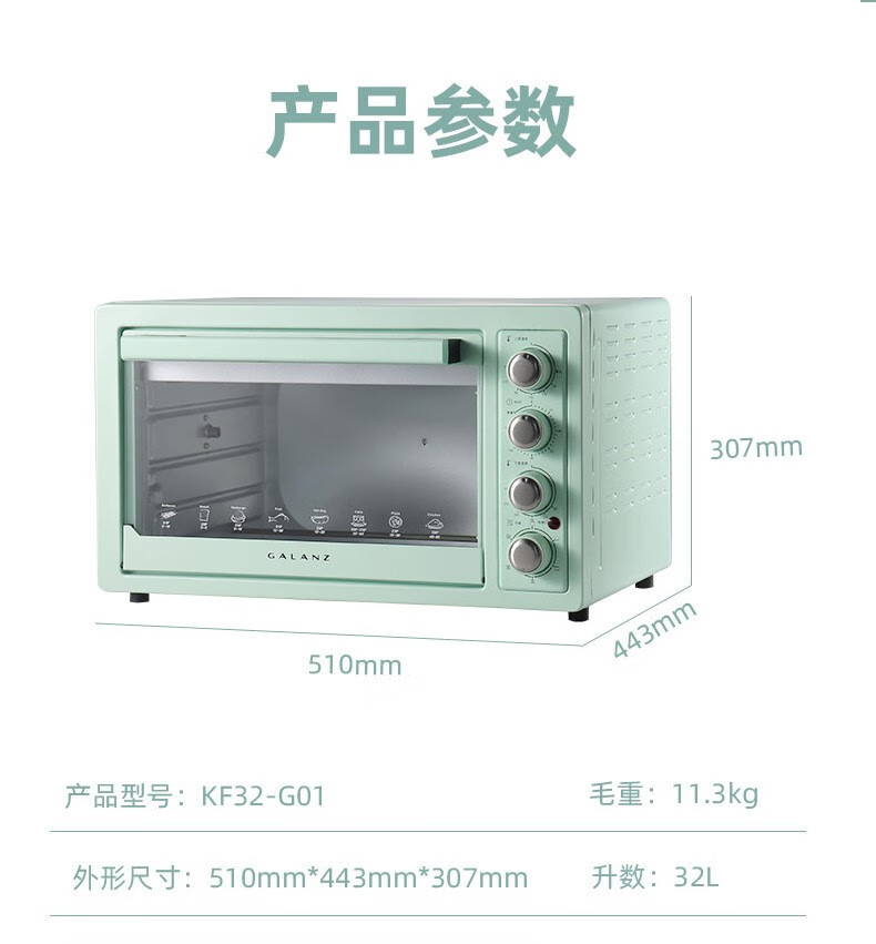 格蘭仕/Galanz KF32-G01 烤箱 電烤箱32升 家用 多功能 無油空氣炸烤箱 KF32-G01 淺綠色