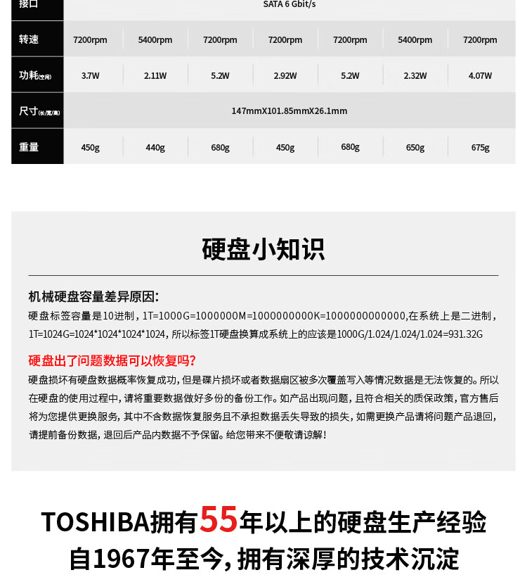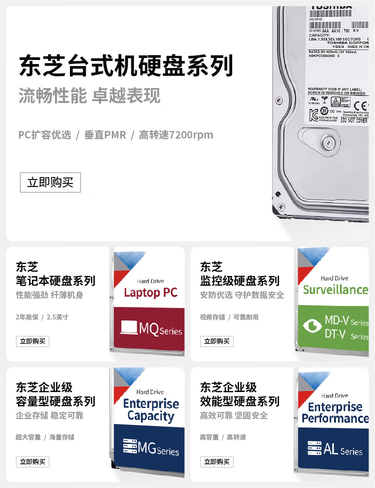 東芝 1T 網(wǎng)絡(luò)存儲(chǔ)設(shè)備臺(tái)式機(jī)硬盤 SATA接口 3.5英寸