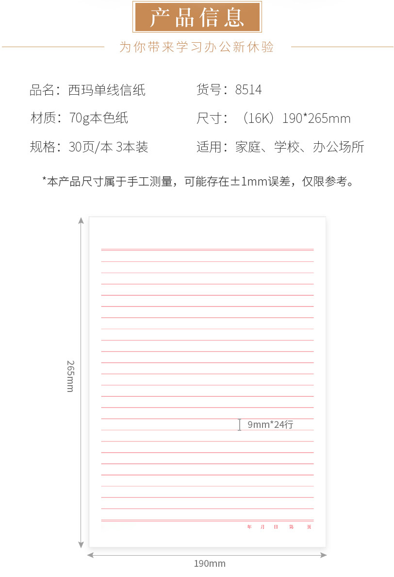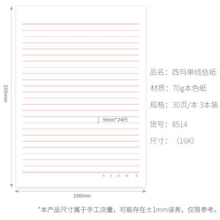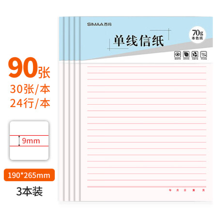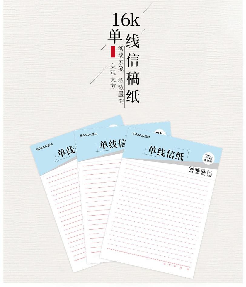 西瑪 SIMAA 復(fù)寫(xiě)紙 單線信紙 稿紙16k/90張70g加厚筆記本子作業(yè)本申請(qǐng)書(shū)信箋紙大學(xué)生語(yǔ)文作業(yè)紙紅線橫格8514
