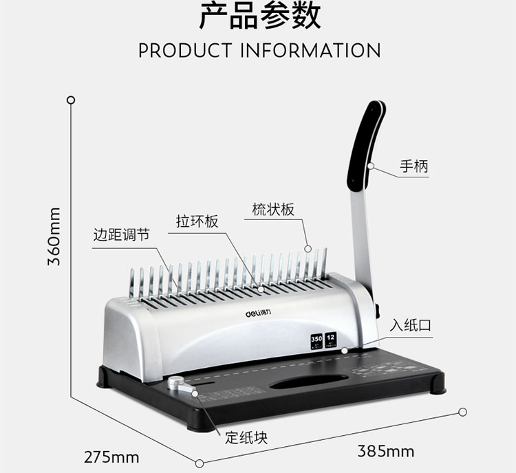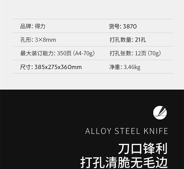 得力 3870 裝訂機(jī) 省力型膠圈/夾條裝訂機(jī) 21孔文件打孔機(jī)
