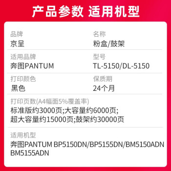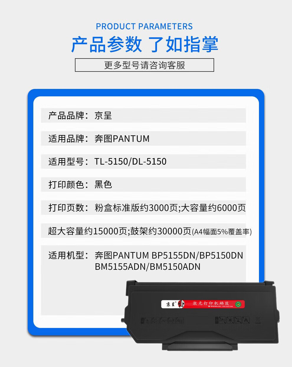 京呈TL-5150粉盒適用奔圖PANTUM BP5155DN BP5150DN BM5150ADN BM5155ADN打印機硒鼓墨盒墨粉盒 DL-5150鼓架/感光鼓【30000頁】