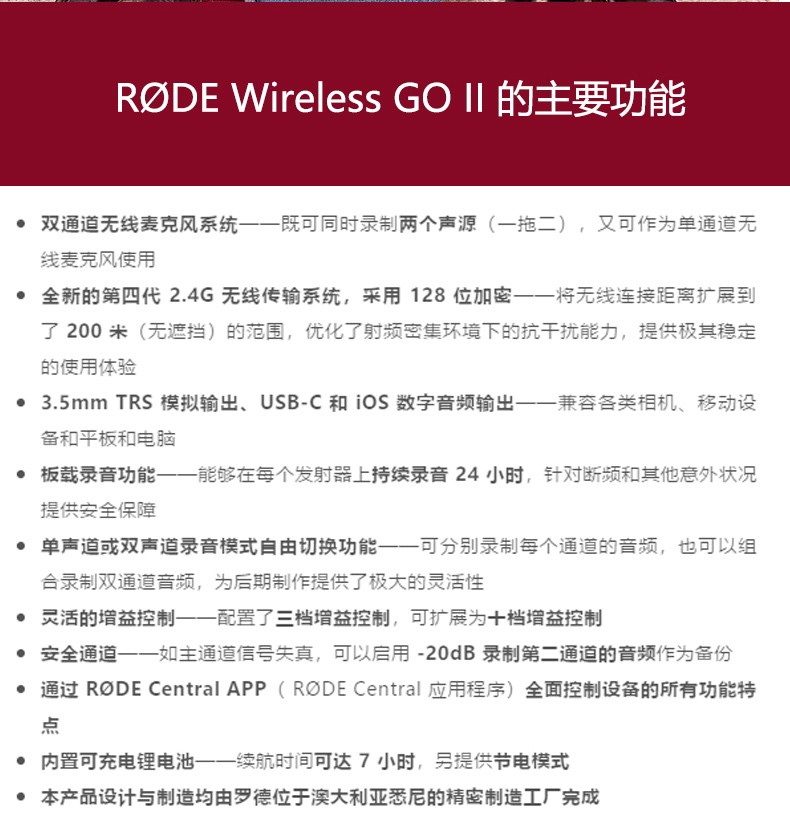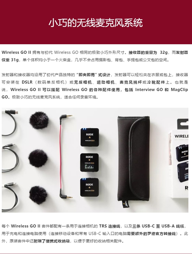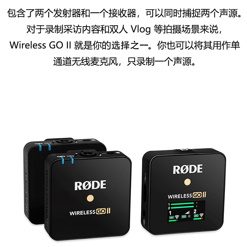 羅德/RODE wireless go II 麥克 一拖二無線領夾麥克風單反手機無線小蜜蜂采訪直播vlog收音 Wireless Go II 一拖二(標配)