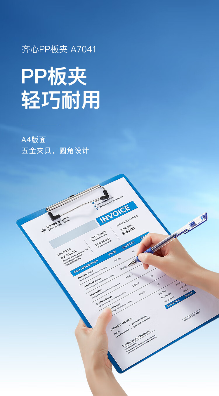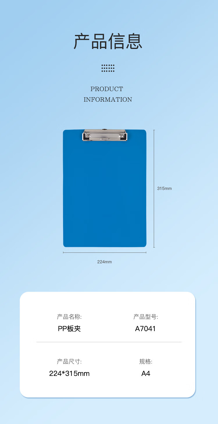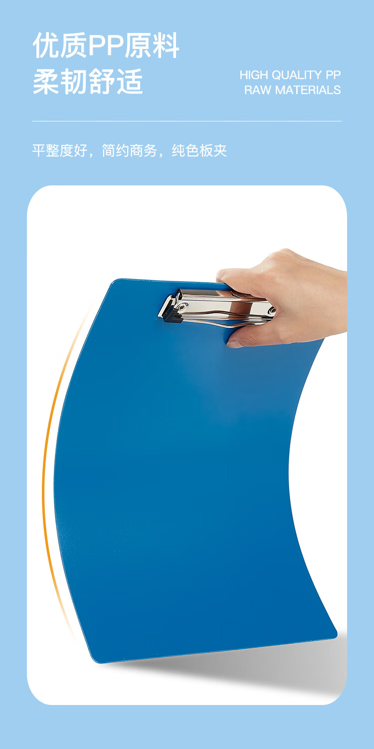 齊心/QIXIN A7041 板夾A4文件夾菜單夾PP平板夾藍色A7041