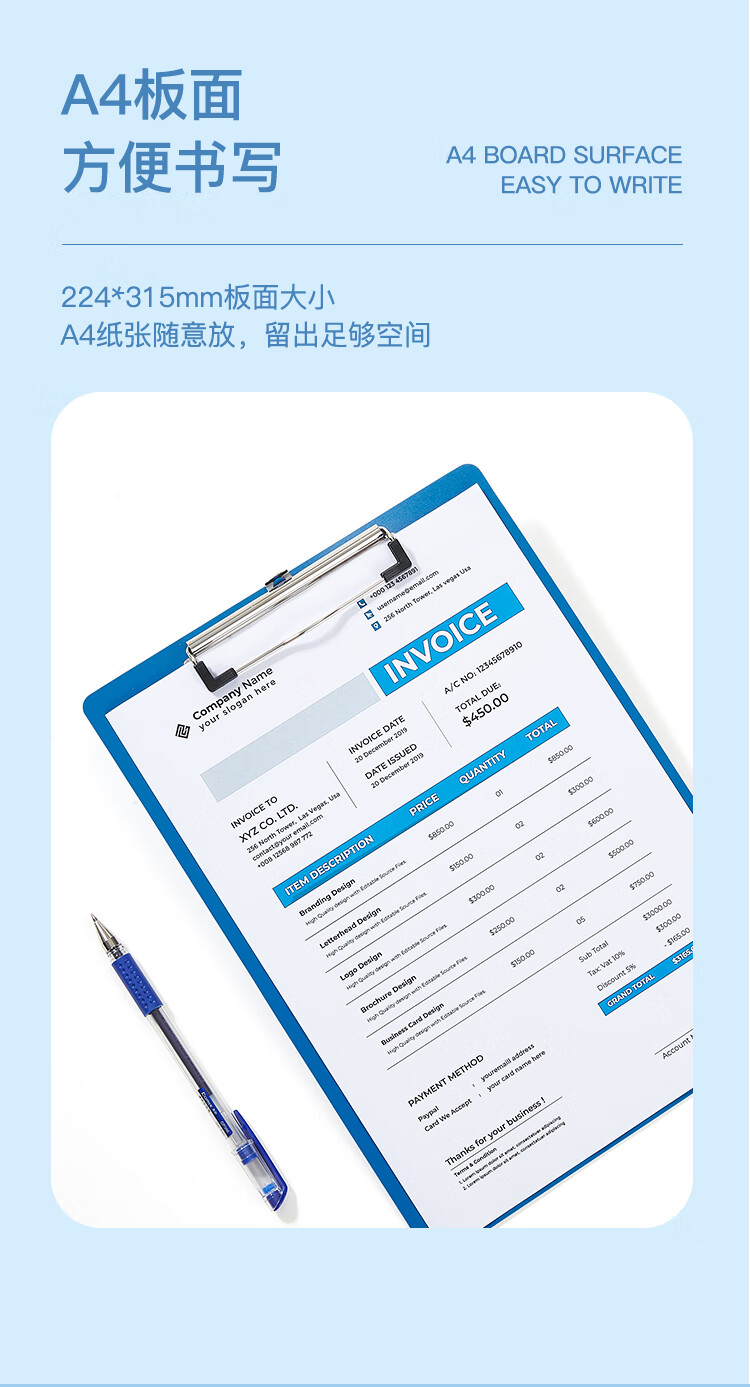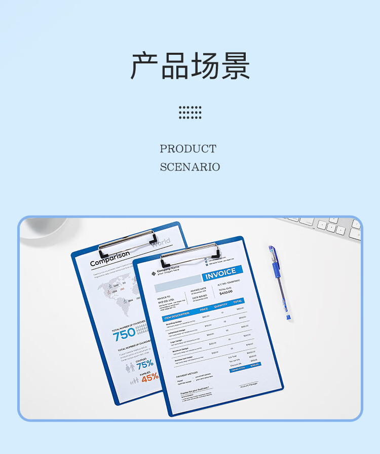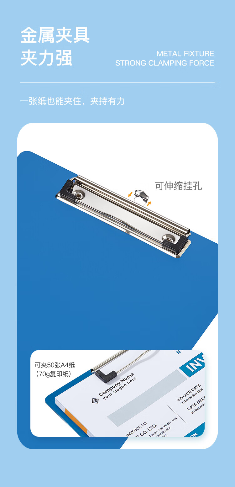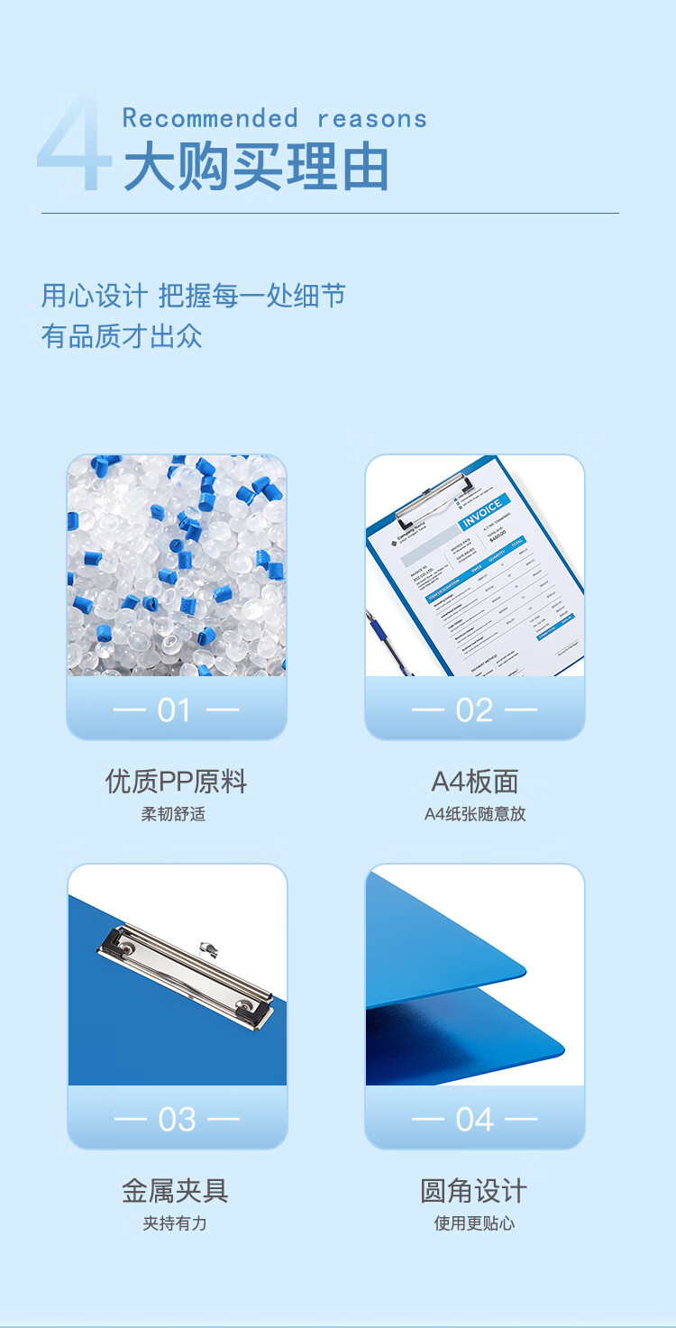 齊心/QIXIN A7041 板夾A4文件夾菜單夾PP平板夾藍色A7041