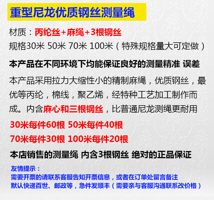 洛港100m 安全繩 黃色尼龍鋼絲繩百米繩工程樁基量地測距繩