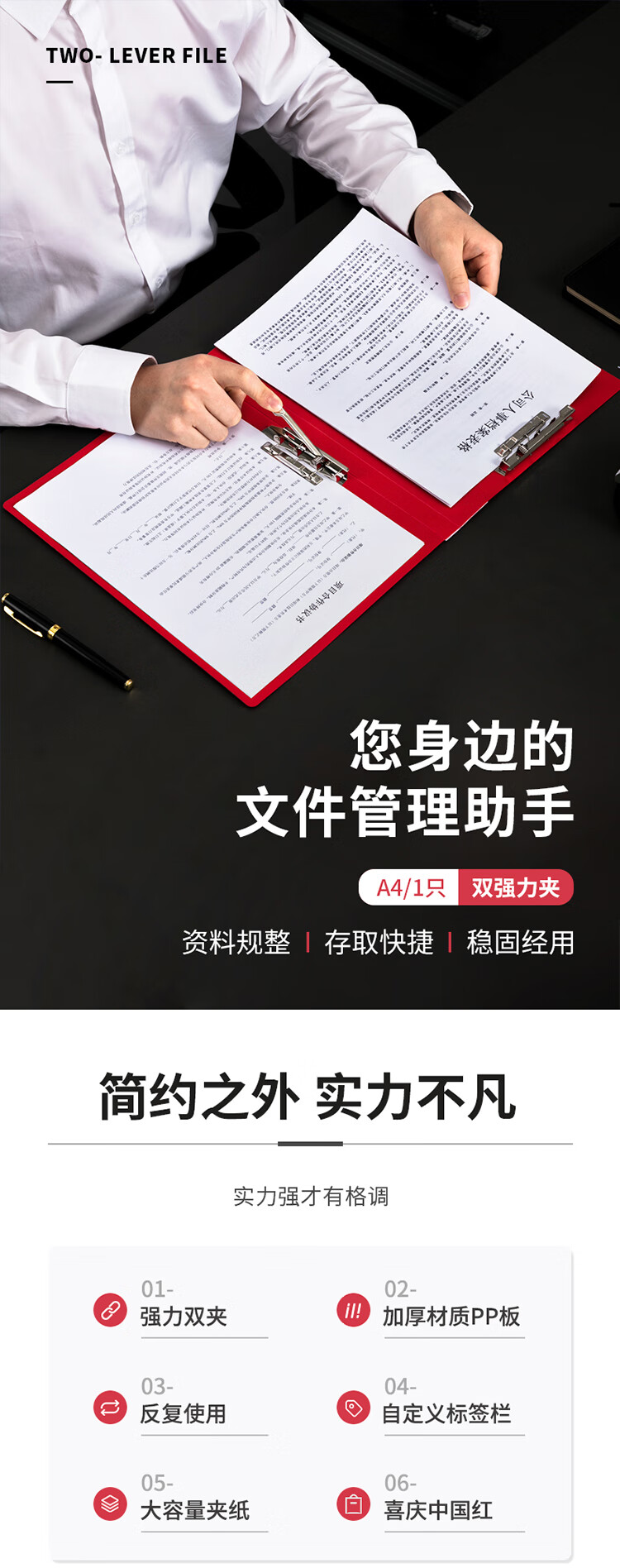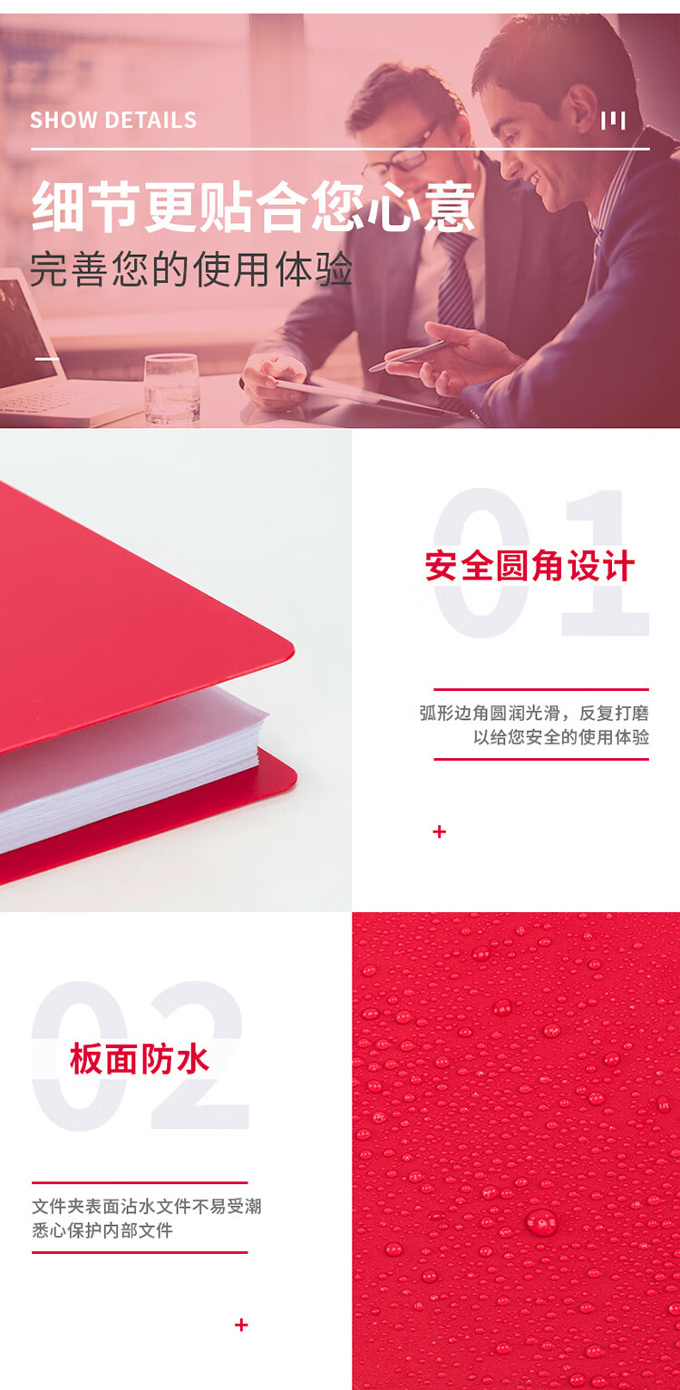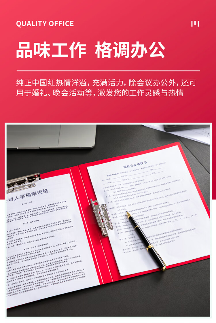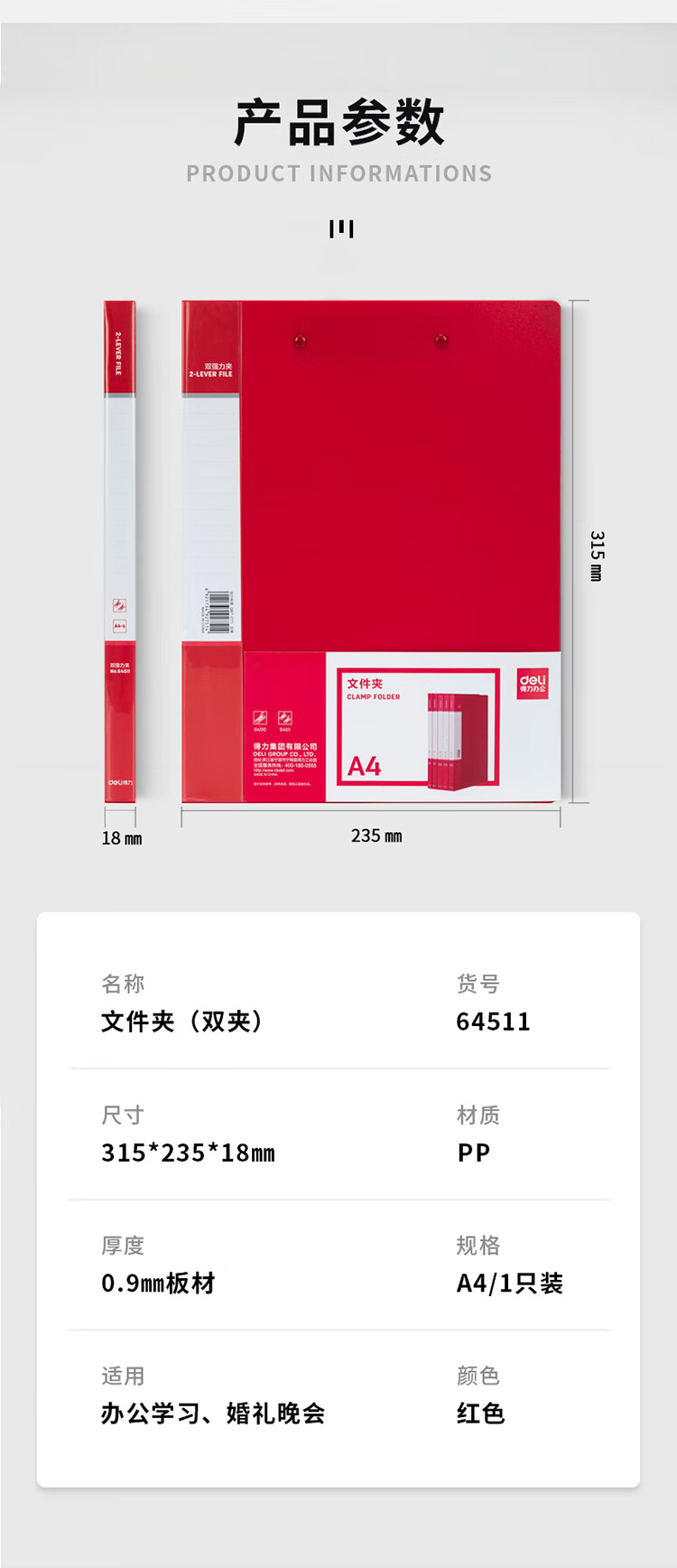 得力 64511deli 文件夾 加厚詩朗誦簽約夾板 試卷資料夾子 文件收納 紅色
