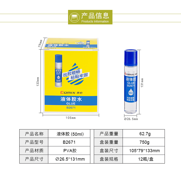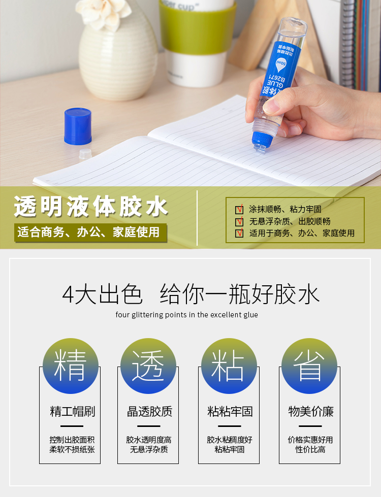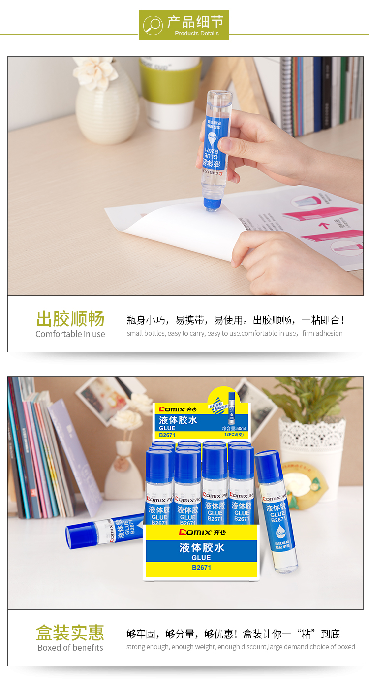 齊心 B2671 膠棒/固體膠/膠水 液體膠水50ml財務(wù)辦公用品學(xué)生手工粘貼票據(jù) 單瓶