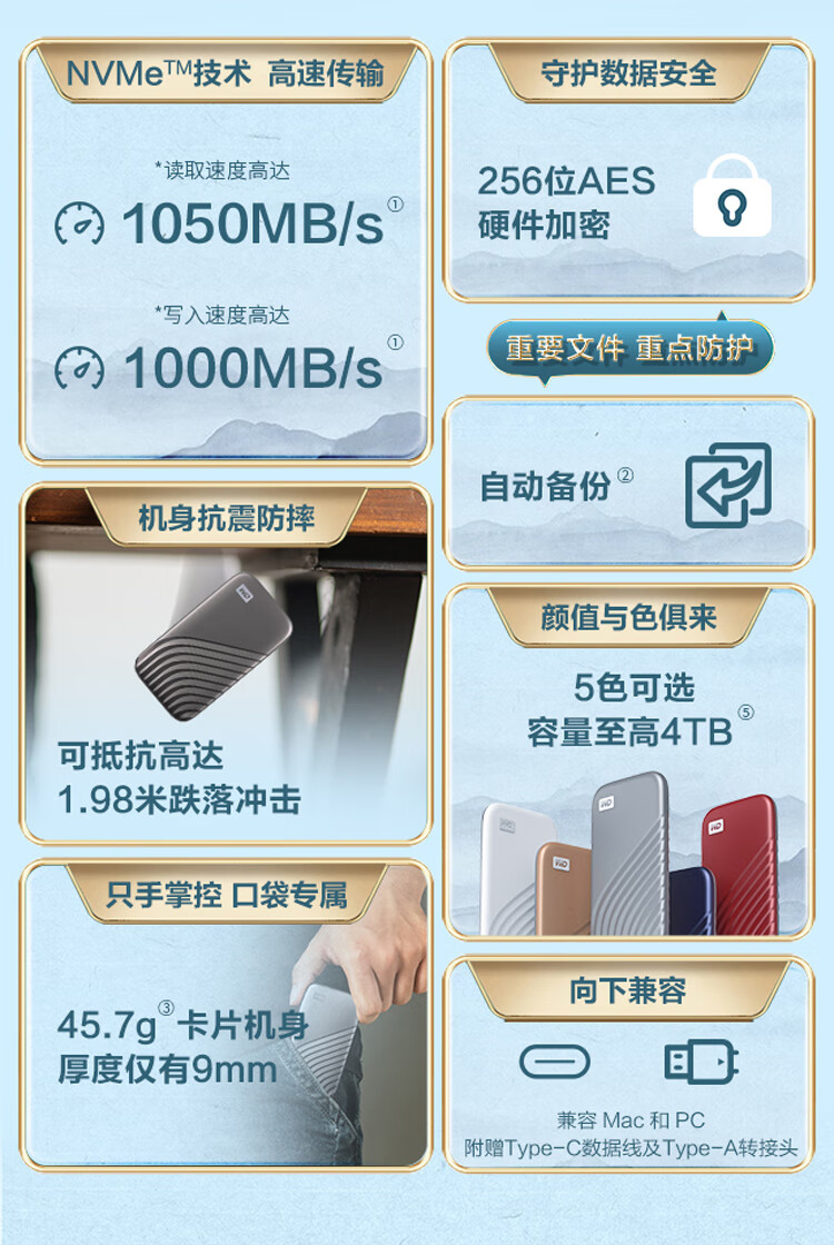 西部數(shù)據(jù)/WD 1TB NVMe 移動硬盤 原裝 黑色