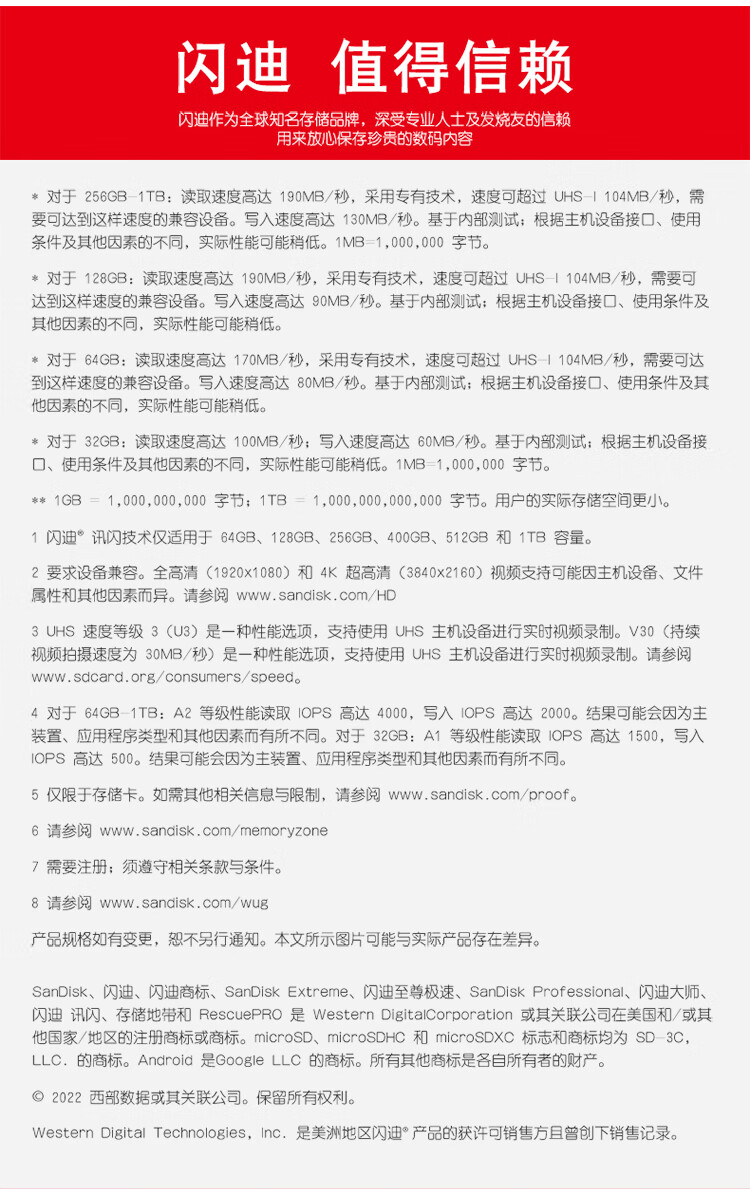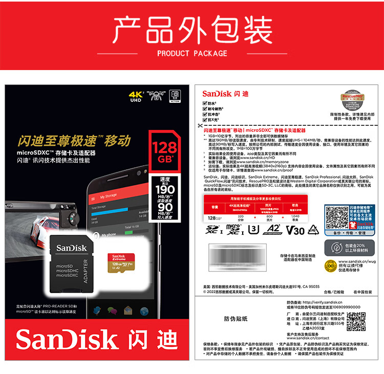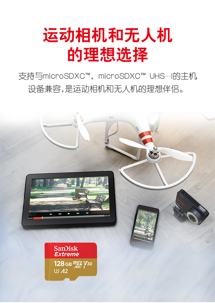 閃迪/SanDisk 128GB U盤/存儲卡 TF(MicroSD)存儲卡 U3 C10 A2 V30 4K 至尊極速移動版內(nèi)存卡 讀速190MB/s