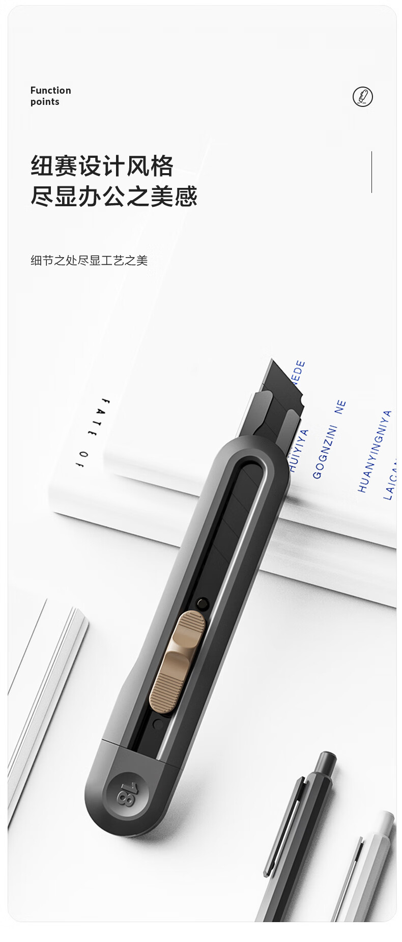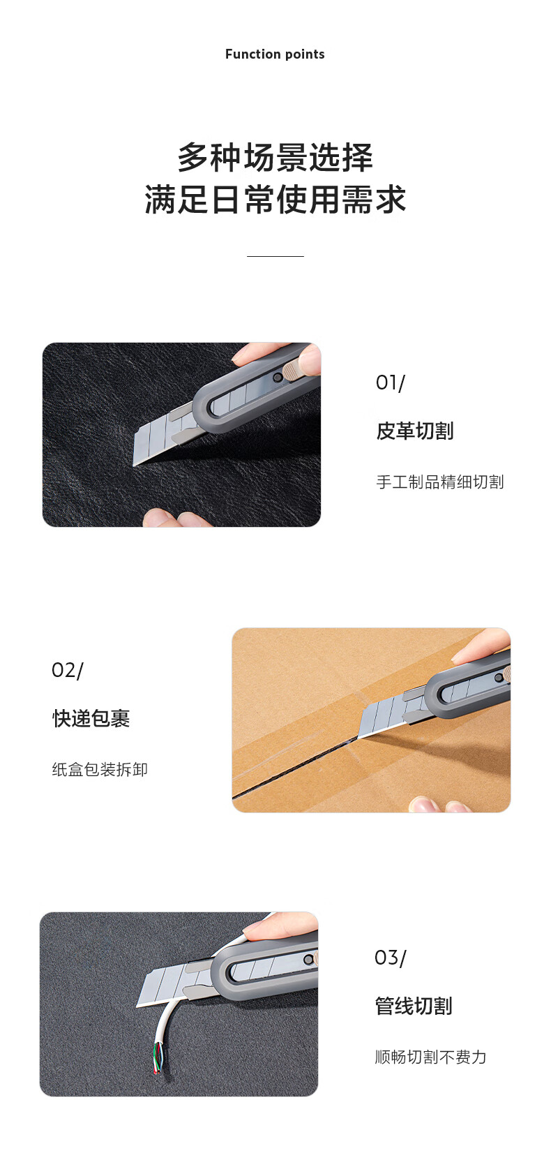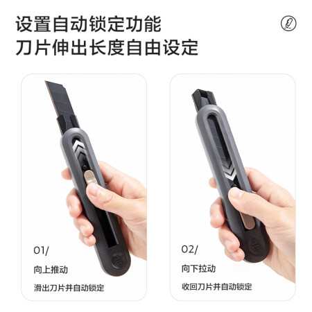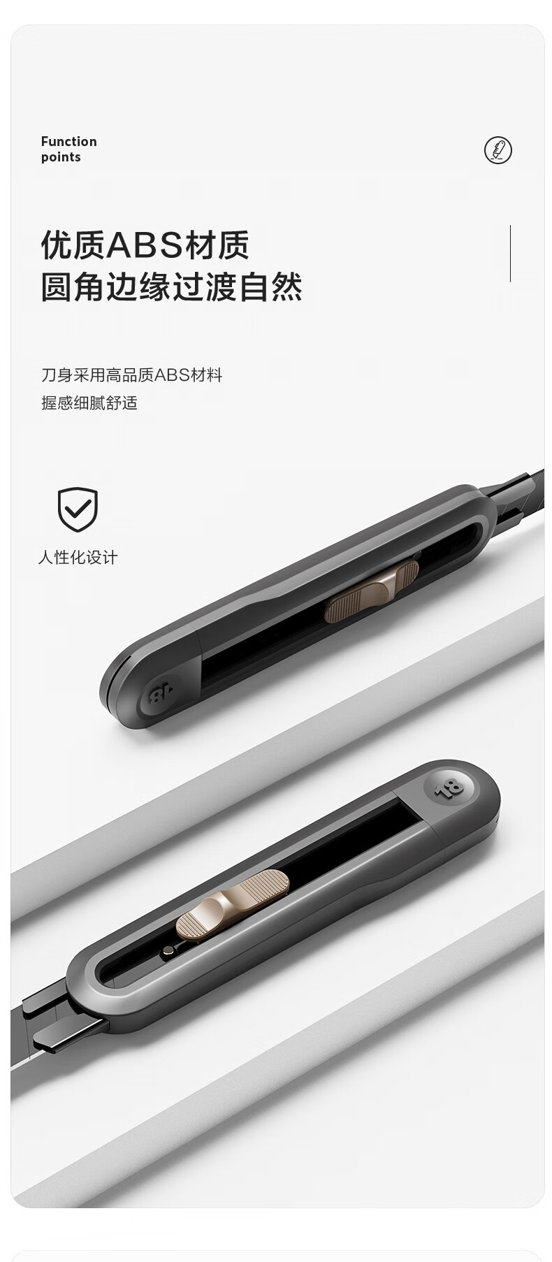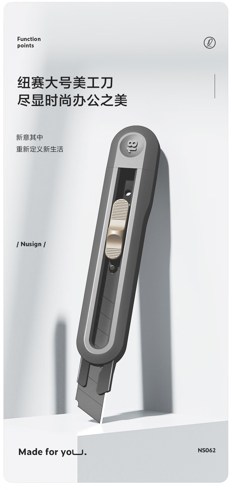 得力紐賽 NUSIGN 美工刀 大號(hào)撞色設(shè)計(jì)美工刀壁紙刀裁紙刀 辦公用品 尾部自帶折刀器 深灰色 NS062