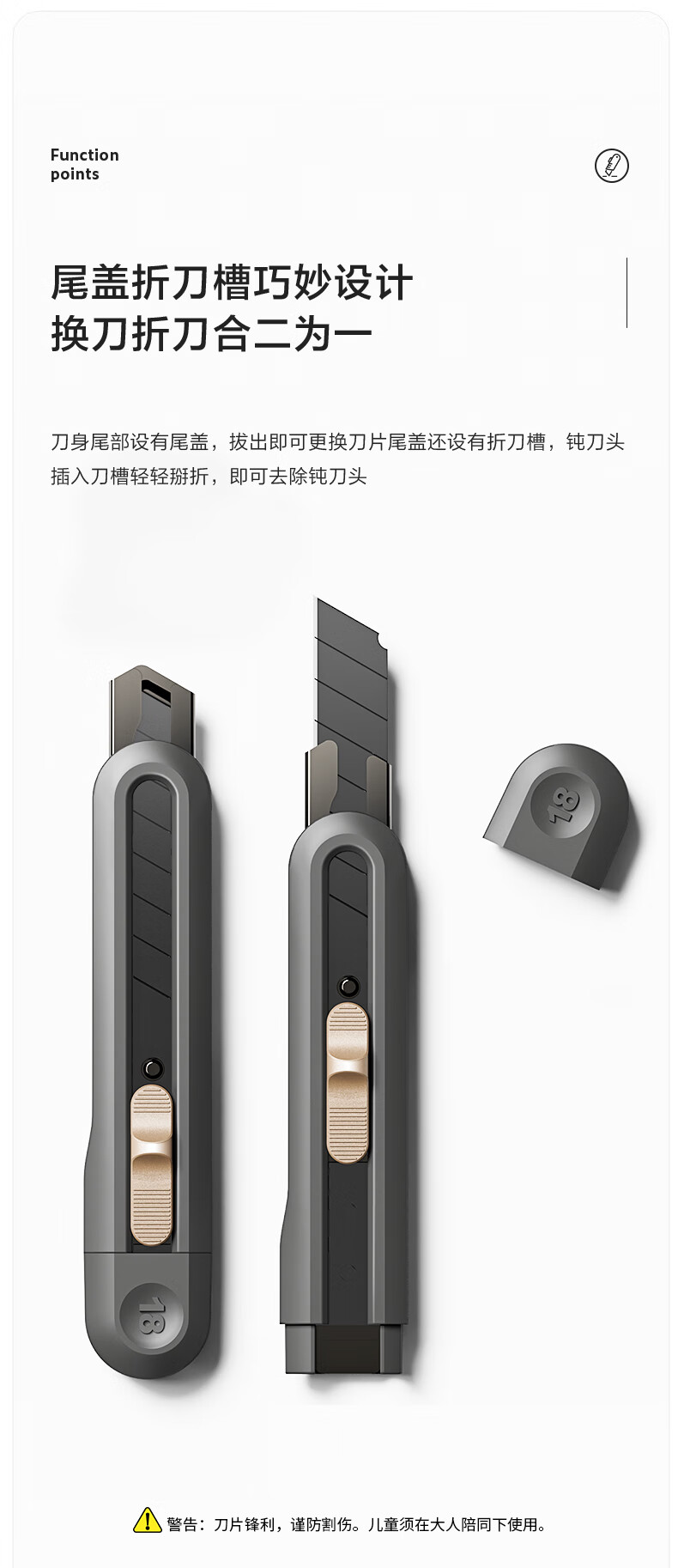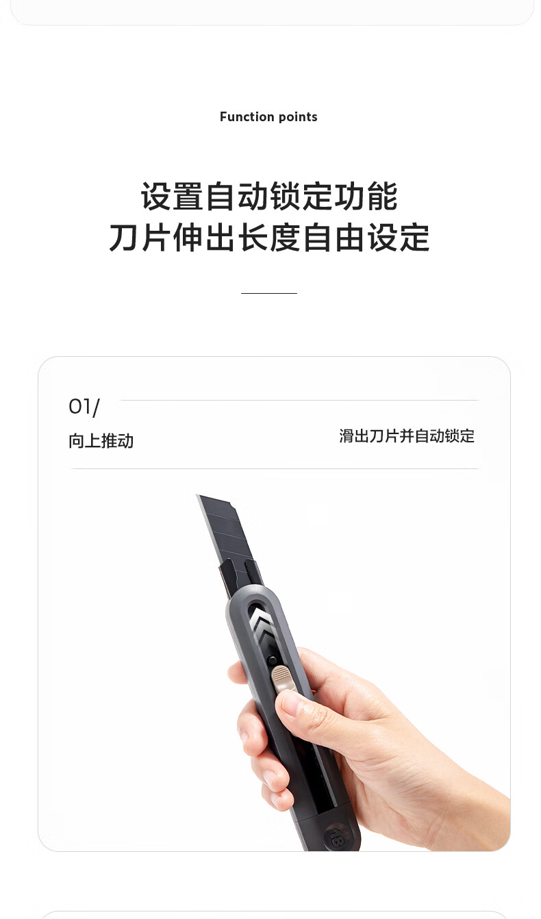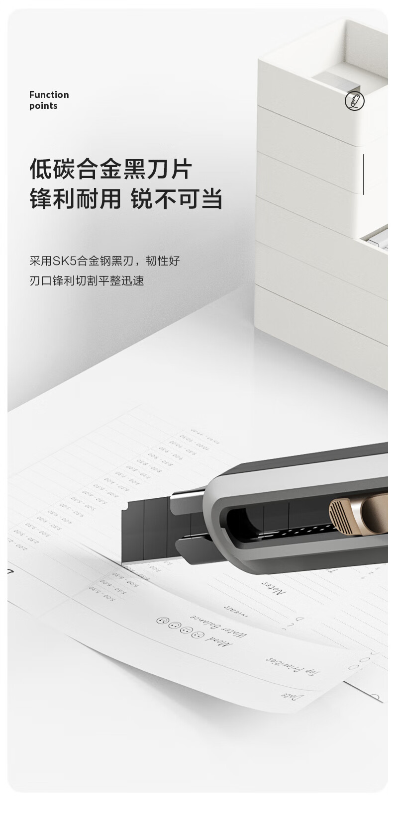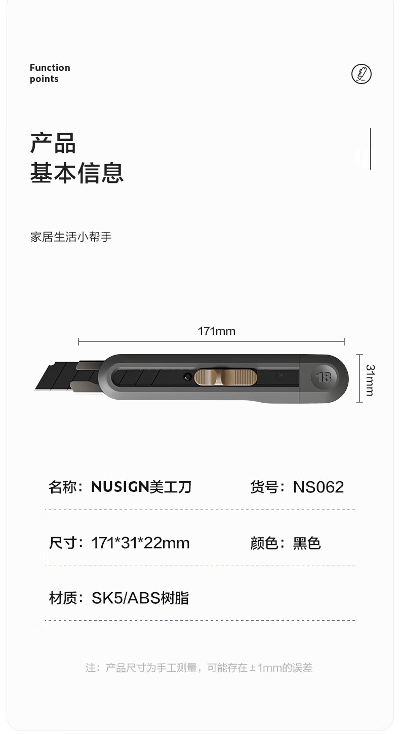 得力紐賽 NUSIGN 美工刀 大號(hào)撞色設(shè)計(jì)美工刀壁紙刀裁紙刀 辦公用品 尾部自帶折刀器 深灰色 NS062