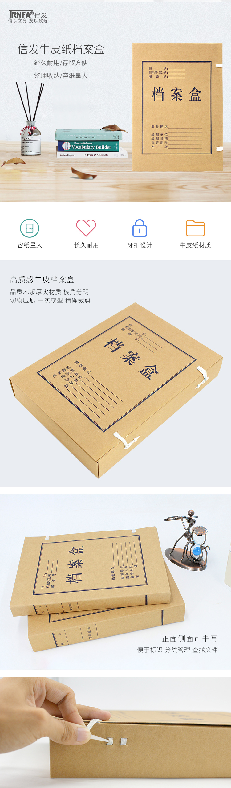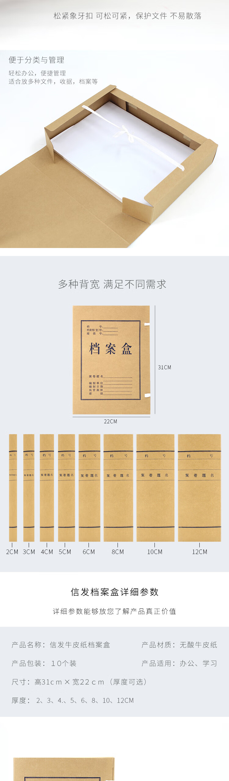 信發(fā) 50mm 檔案盒 定制牛皮紙檔案盒A4純漿5厘米資料盒高質(zhì)感無酸紙質(zhì)(10只裝)可印制企業(yè)LOGO