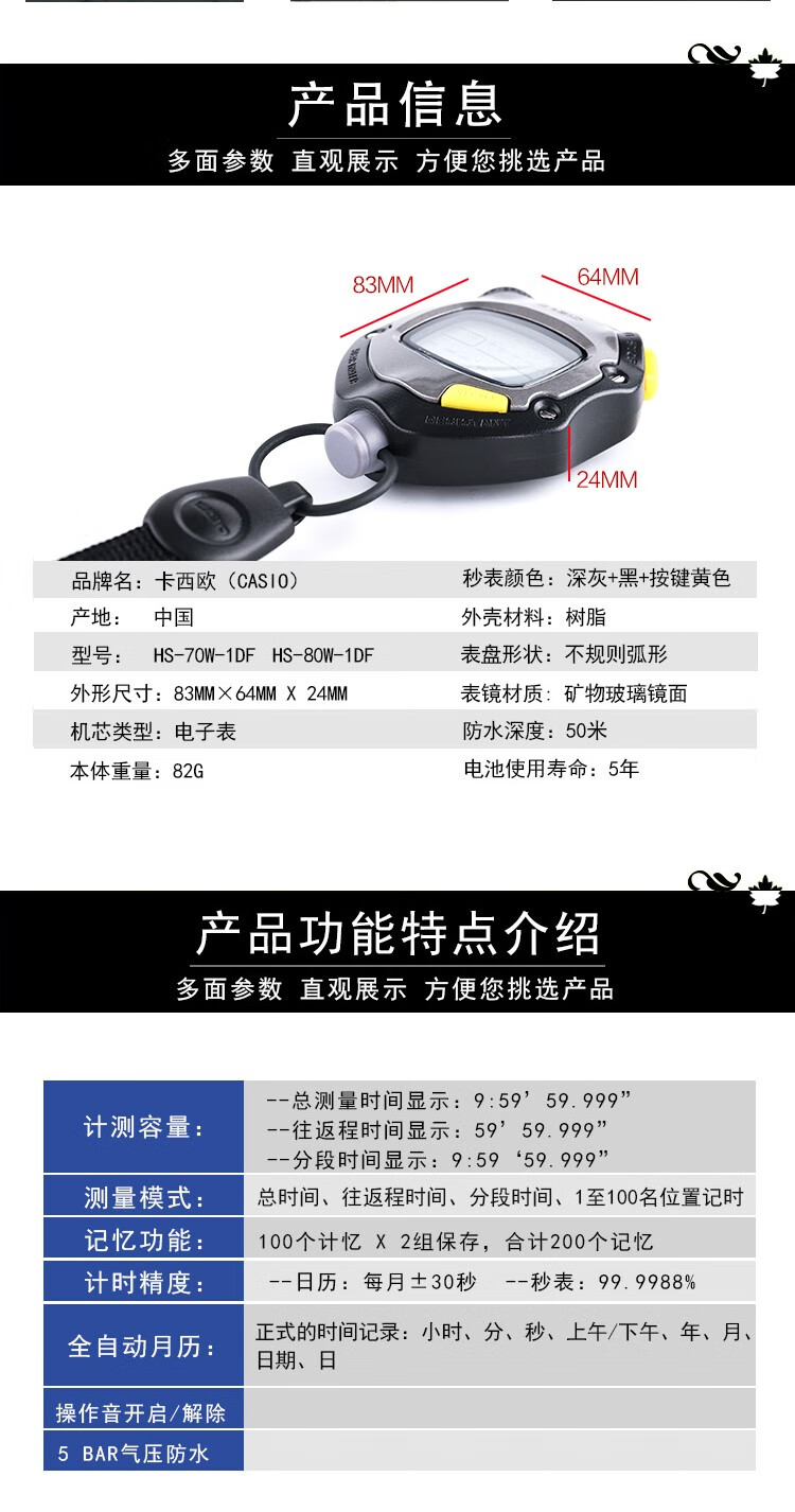 卡西歐/CASIO HS-70W 鐘表 計時器 比賽專用