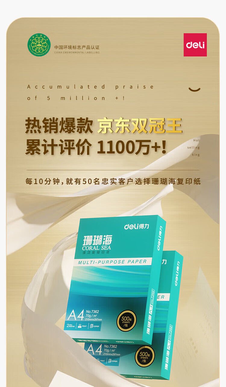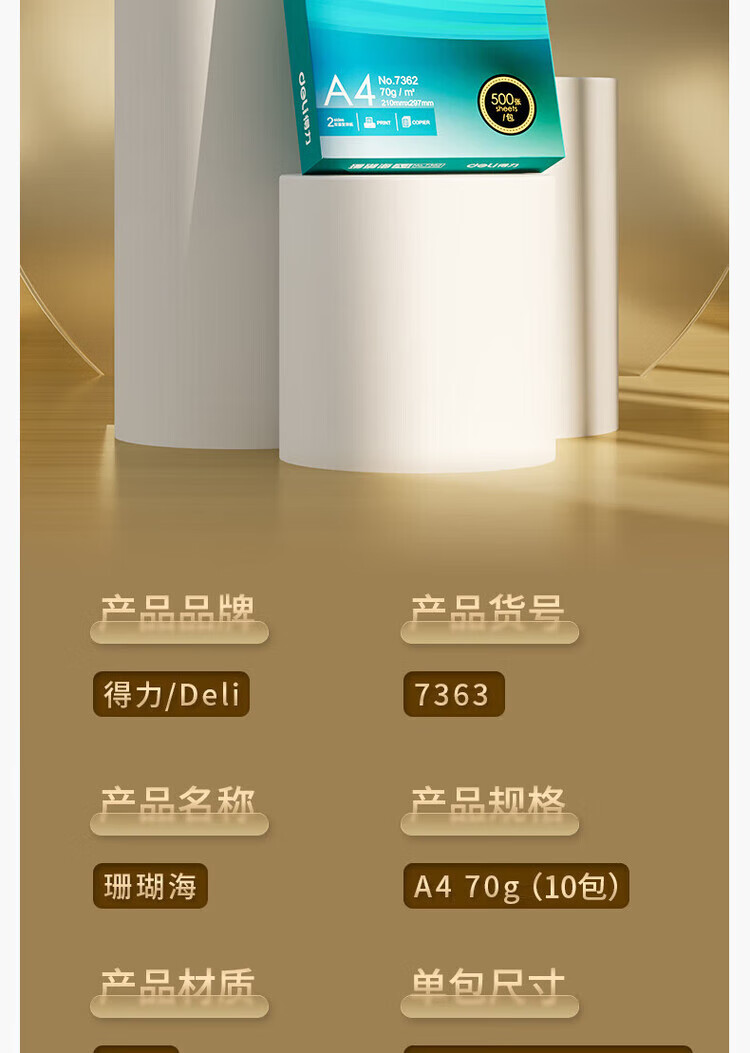 得力/deli A4 70g 復(fù)印紙 10包 原裝