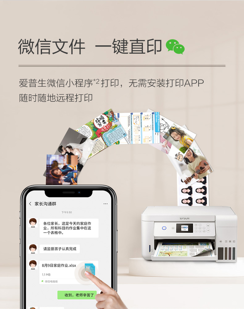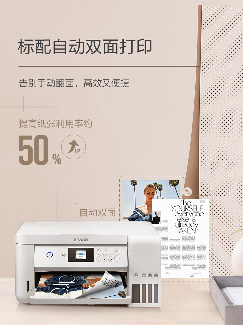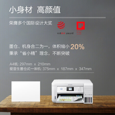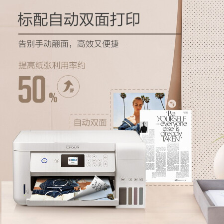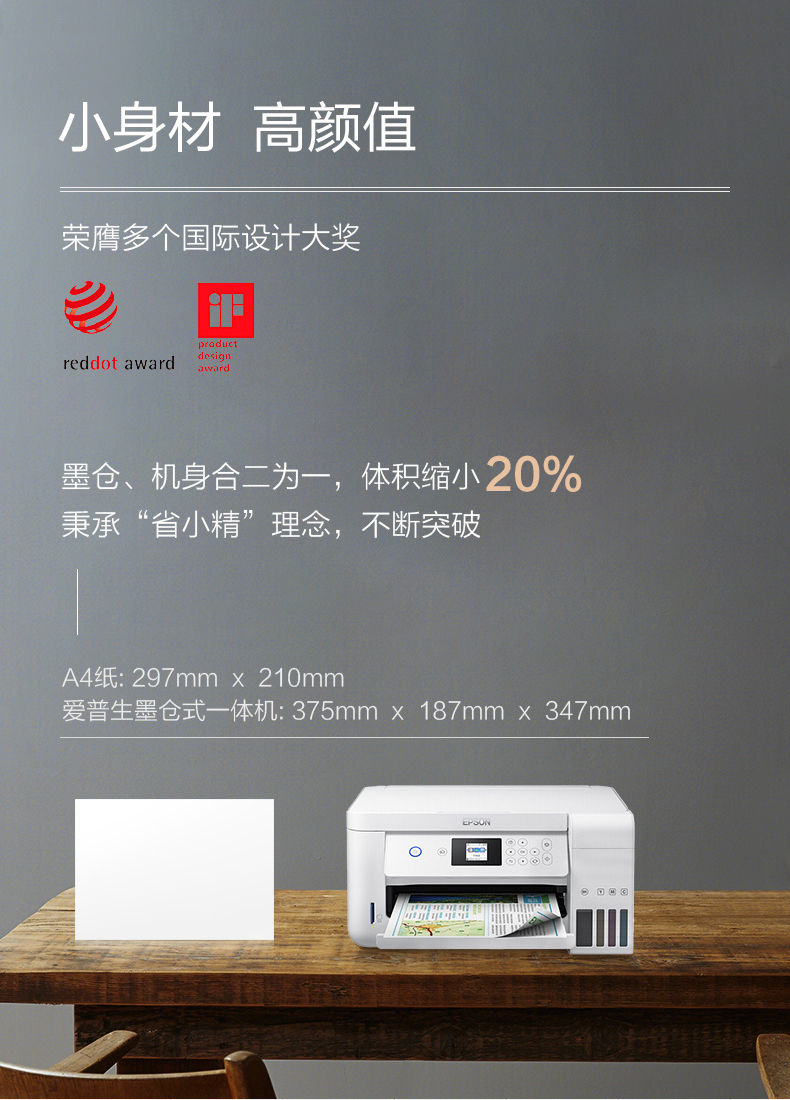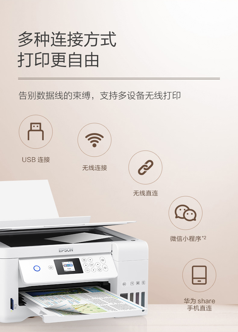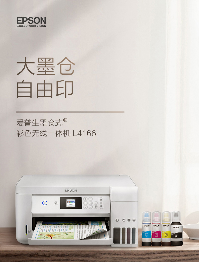 愛(ài)普生(EPSON)墨倉(cāng)式品質(zhì)款L4166(優(yōu)雅白) 微信打印/無(wú)線連接 打印復(fù)印掃描一體機(jī)
