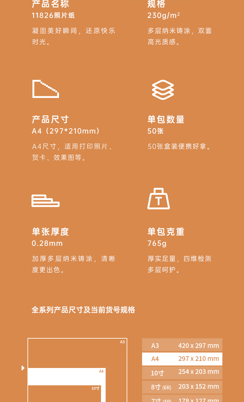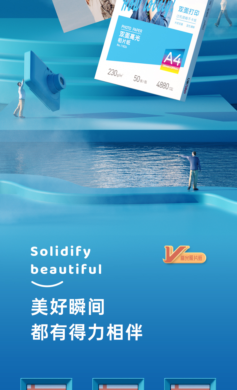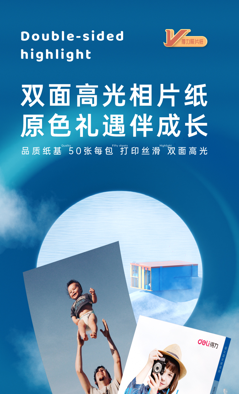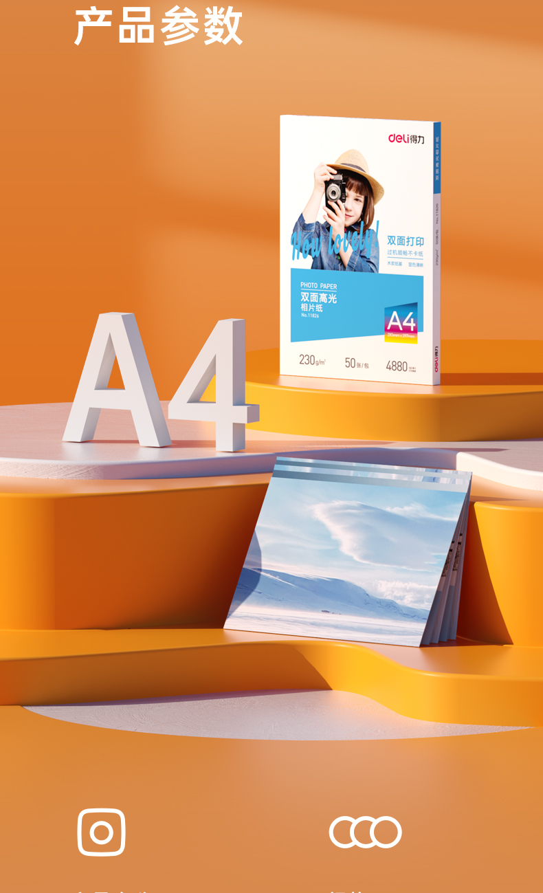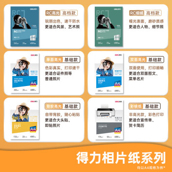 得力/deli A4 噴墨/相片紙/卡紙 230g雙面高光照片紙 相片打印紙 50張/盒 11826