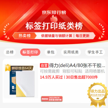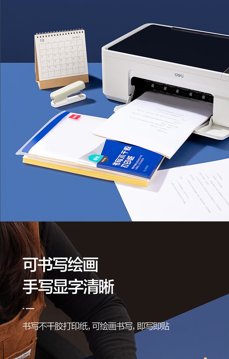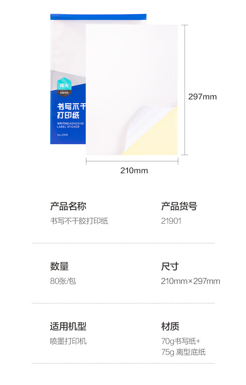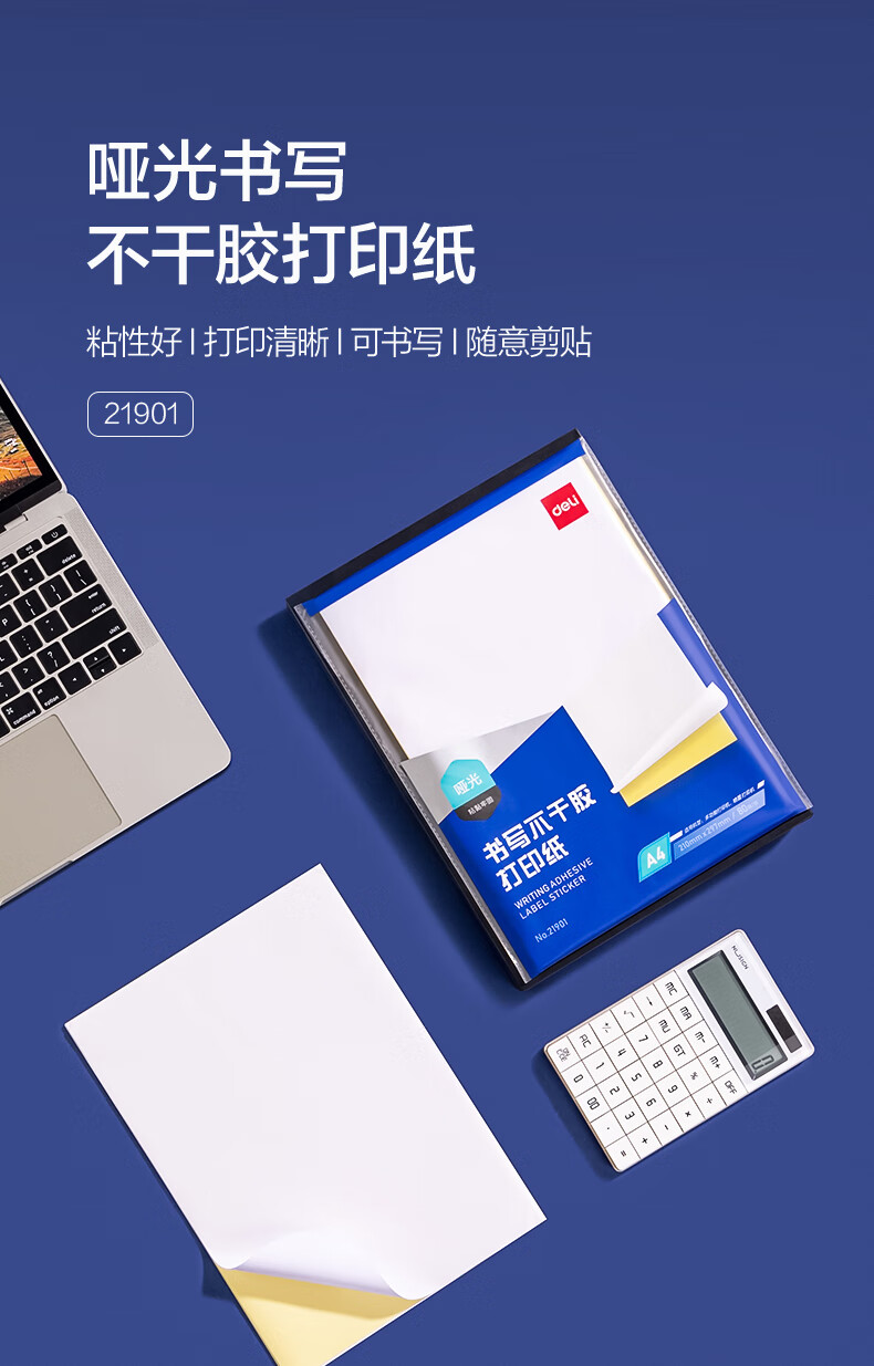 得力 21901 標(biāo)簽打印紙/條碼紙 A4/80張不干膠標(biāo)貼打印紙 帶背膠亞面銅版標(biāo)簽紙 自切割