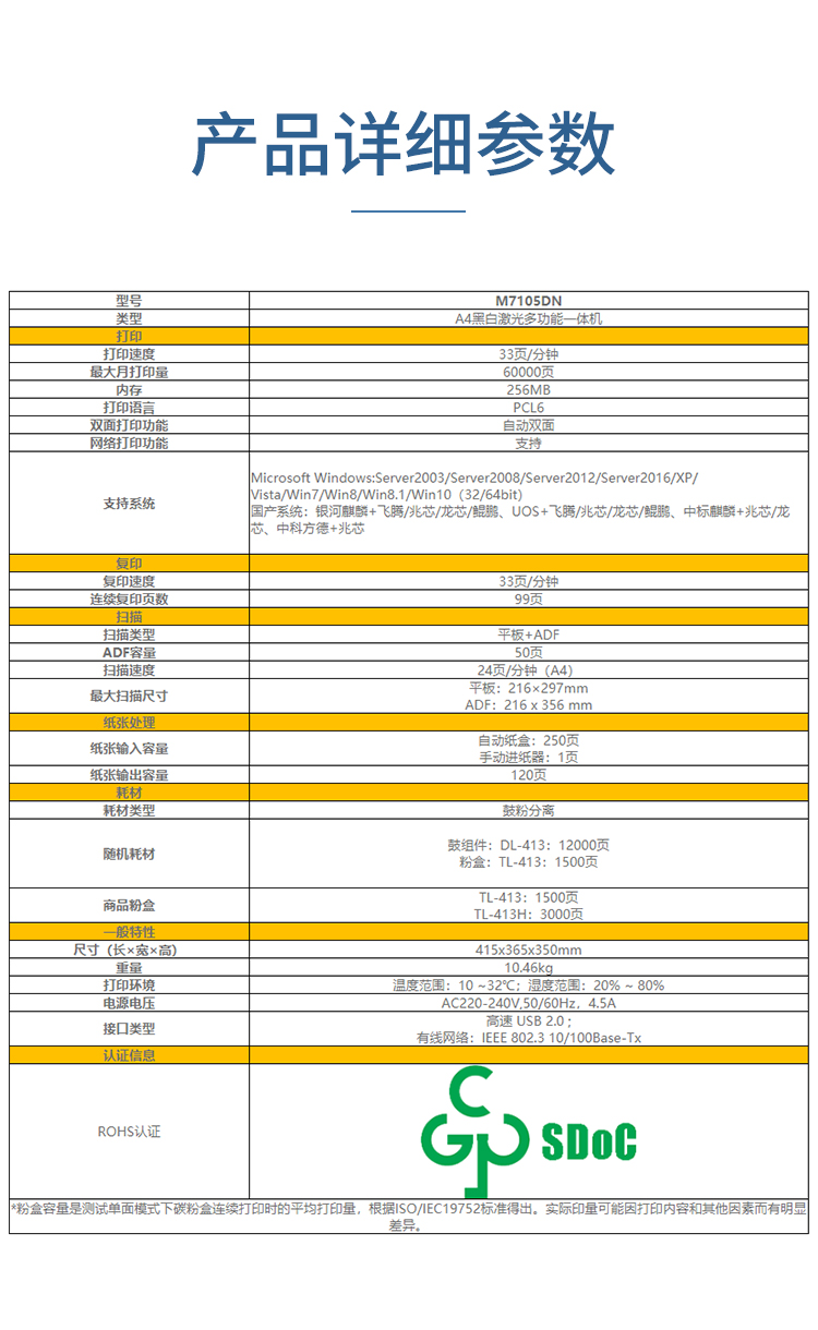 奔圖7105DN 熱式打印機(jī) A4黑白激光多功能一體機(jī) 自動雙面打印 網(wǎng)絡(luò)打印 國產(chǎn)信創(chuàng)目錄產(chǎn)品