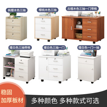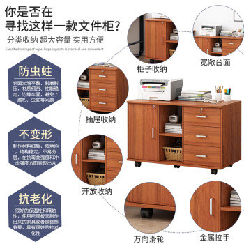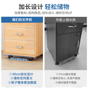 秋佳 實木辦公桌邊柜側(cè)柜 文件柜辦公室柜子木質(zhì)帶鎖抽屜柜移動收納帶輪桌下矮柜儲物柜 【三抽帶鎖帶滑輪】黑胡桃色40*34*58cm-&