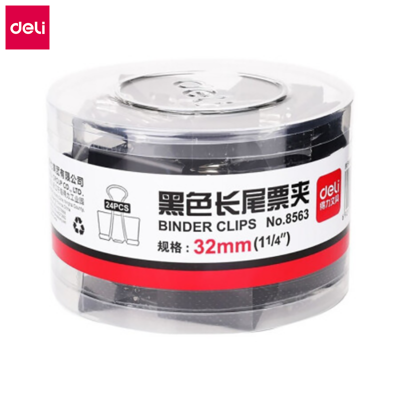 得力/deli 8563 裝訂及打孔類 長(zhǎng)尾票夾 長(zhǎng)尾夾 32mm 24個(gè)/筒