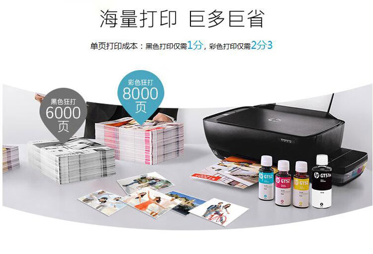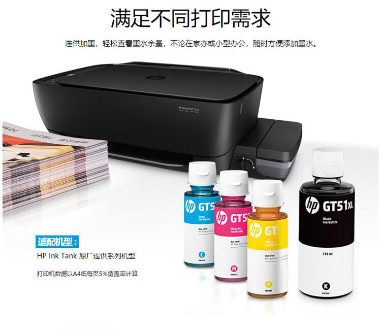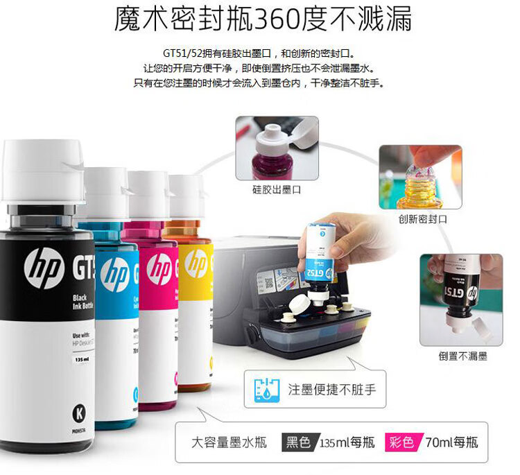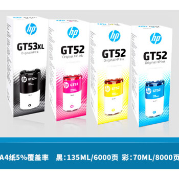 惠普/HP 噴墨盒 GT52 51 52 53XL打印機(jī)墨水310 410 510 518 519 538 5810盒 適用惠普GT53/52四色一套 限購(gòu)28