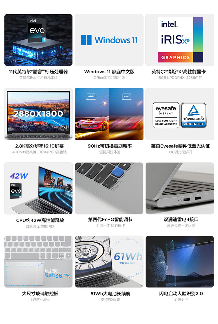 聯(lián)想筆記本電腦小新Pro14 英特爾Evo平臺(tái) 14英寸游戲輕薄本 標(biāo)壓i5 16G 512G 2.8K 90Hz護(hù)眼屏 全面屏辦公本