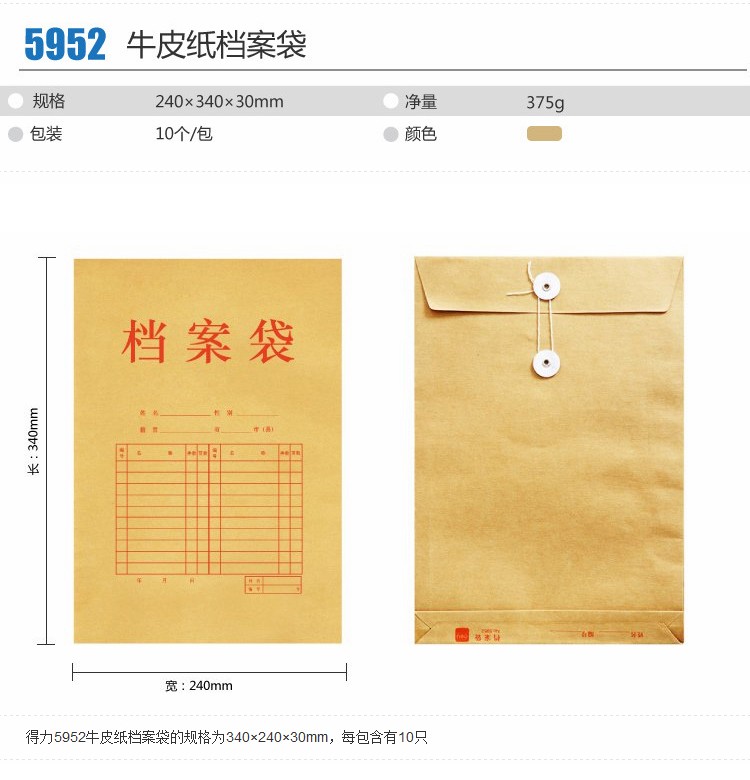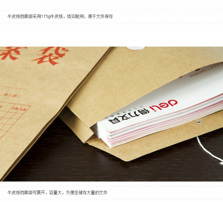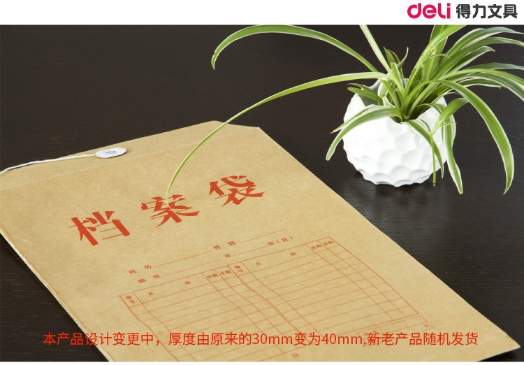 得力 3cm 文件袋 A4純漿175g牛皮紙檔案袋 側(cè)寬3cm文件資料袋 票據(jù)收納