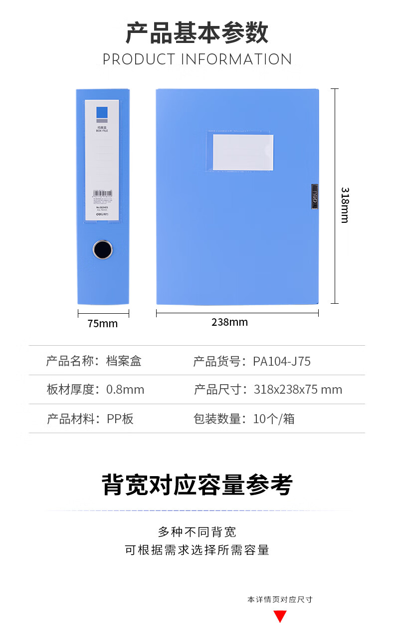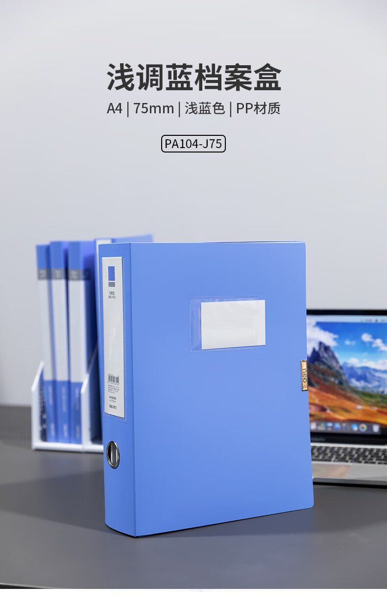 得力 PA104-J75 檔案盒10只75mmA4塑料PP粘扣文件盒檔案盒資料盒憑證文件收納盒財(cái)會(huì)用品PA104-J75藍(lán)色